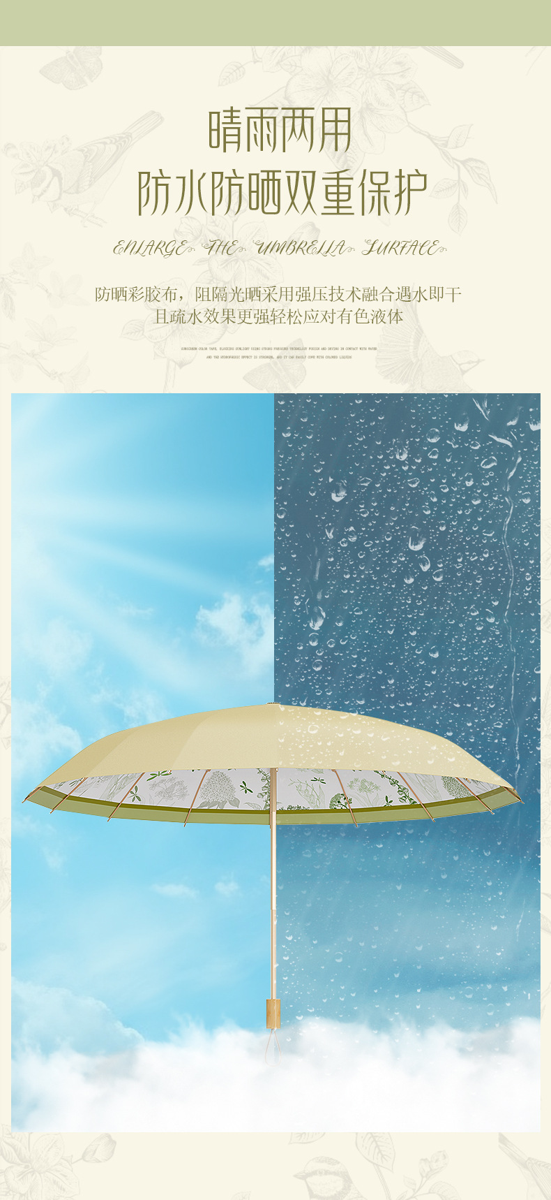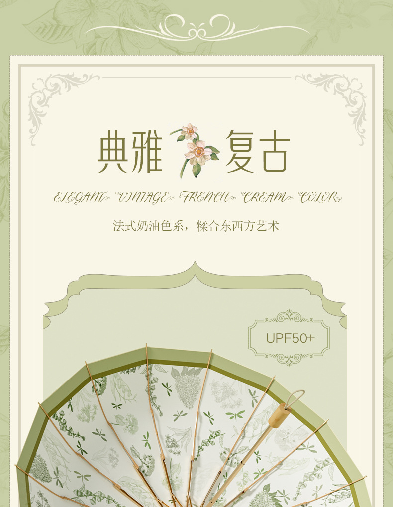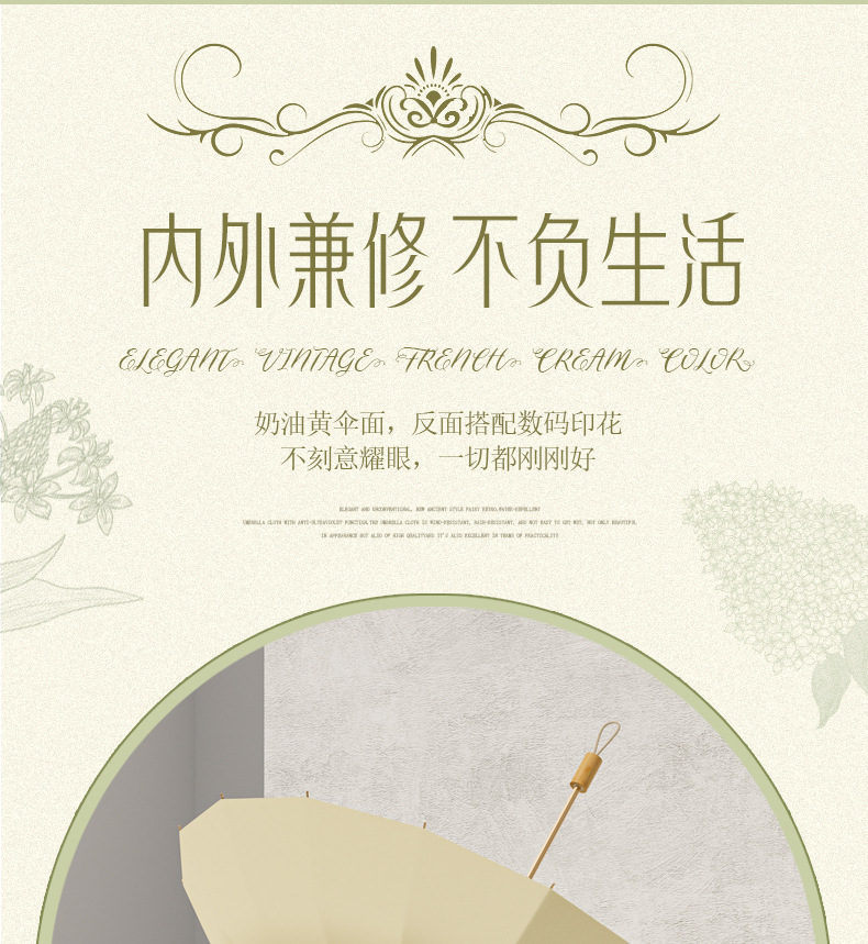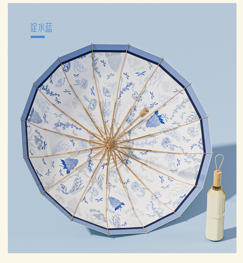 16-뼈 세 접는 햇빛 우산 컬러 접착제 선 스크린 우산 안티-UV 프렌치 레트로 맑고 비 듀얼 사용 맞춤형 태양 우산