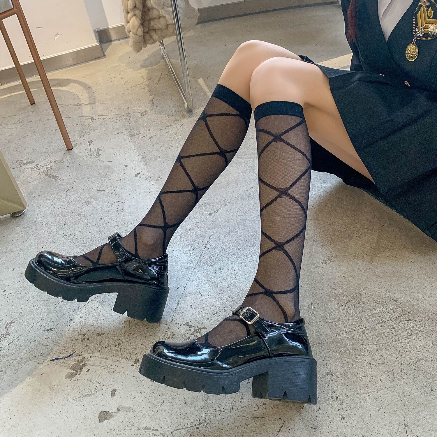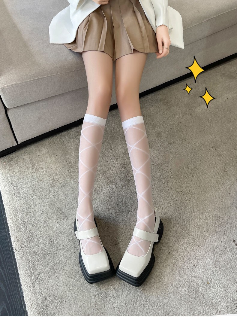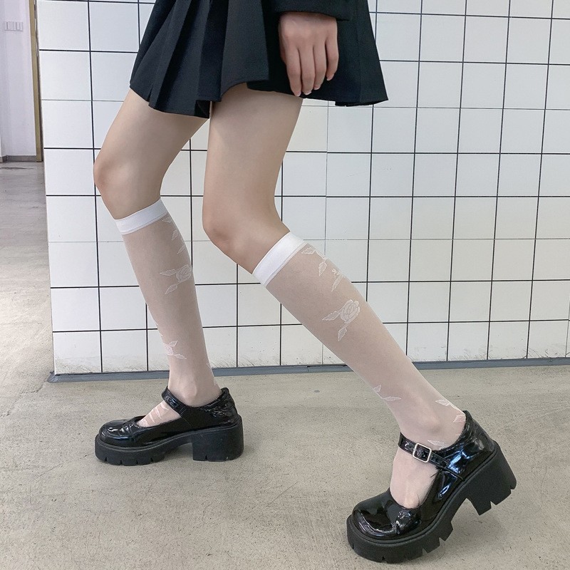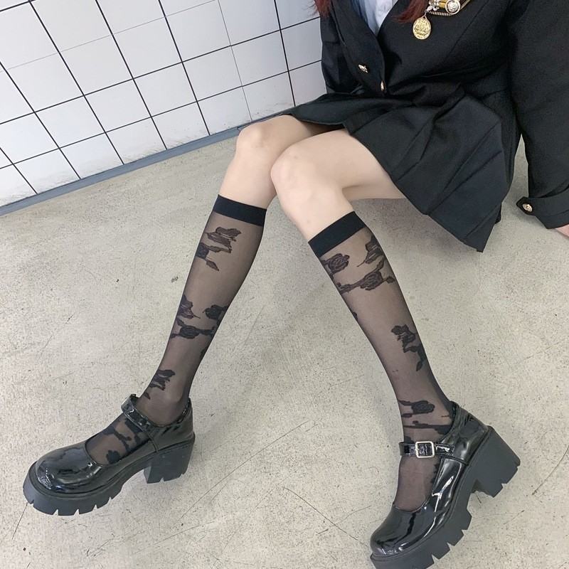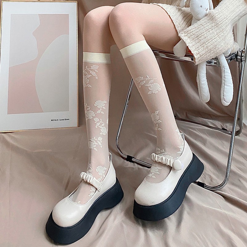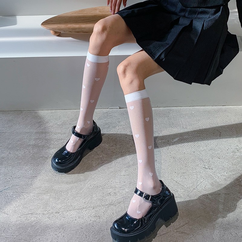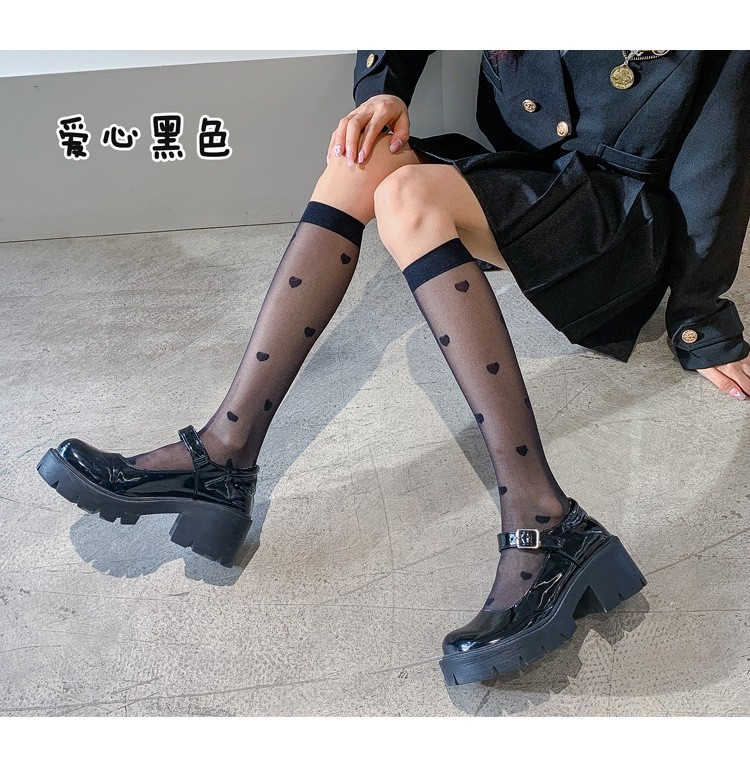 양말 여성용 종아리 중간 양말 앙코라 레드 러브 보우 푹신한 그레이 푹신한 양말 다용도 긴 학생 양말