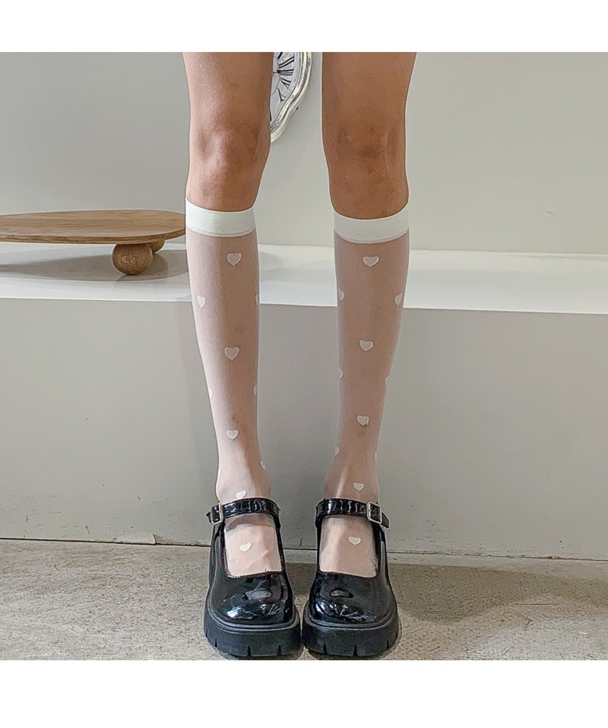 양말 여성용 종아리 중간 양말 앙코라 레드 러브 보우 푹신한 그레이 푹신한 양말 다용도 긴 학생 양말스토어 가기