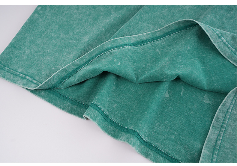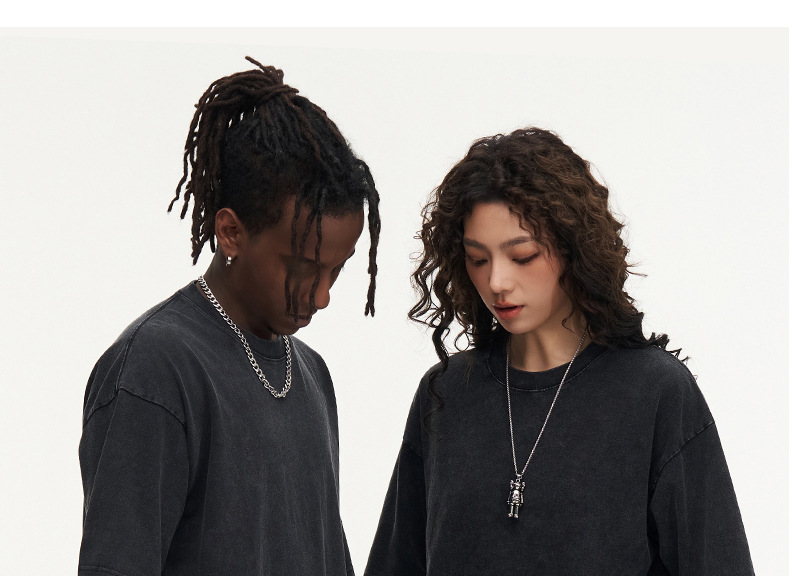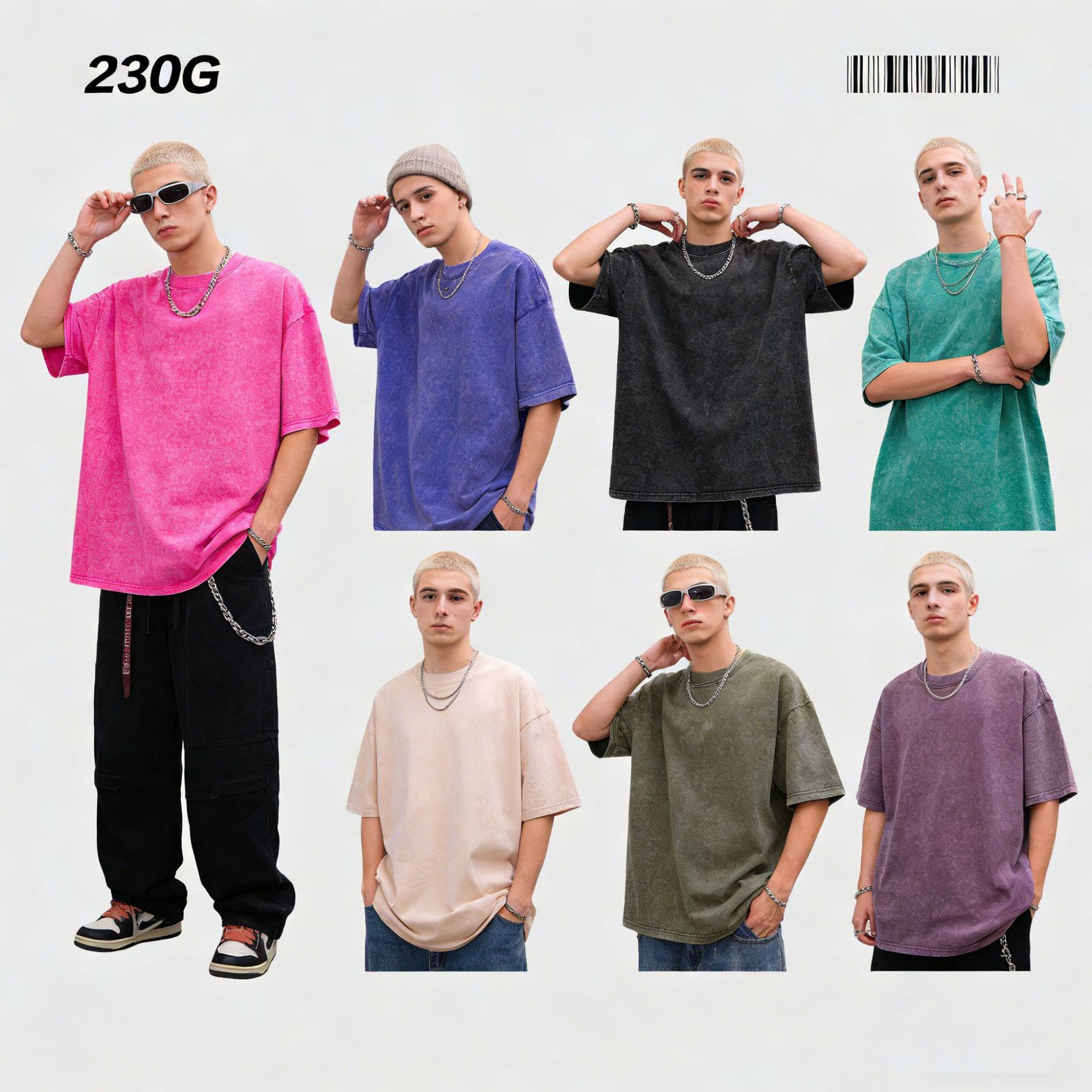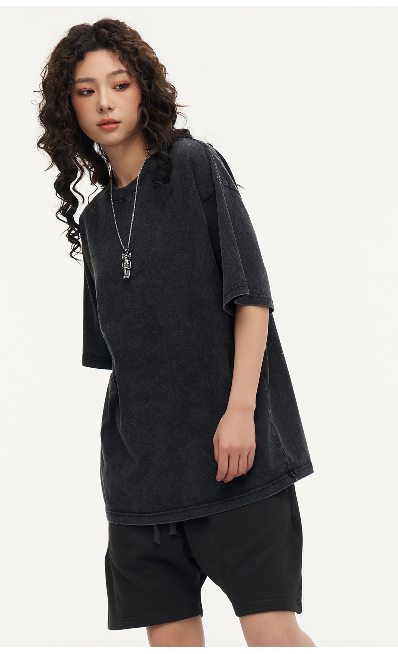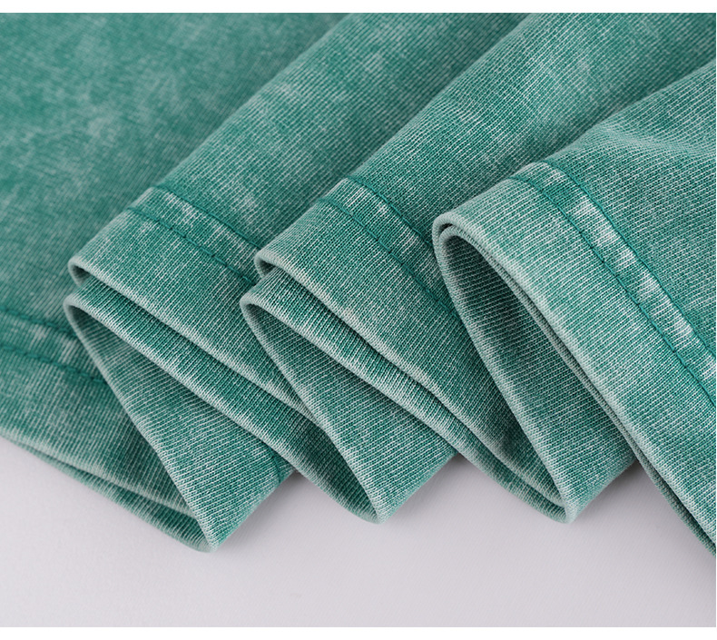 남성용 티셔츠 230g 산성 워싱 눌어붙은 눈송이 루즈한 디스트레스드 레트로 긴팔 워싱 반팔 퓨어 코튼 티셔츠 유럽 사이즈스토어 가기