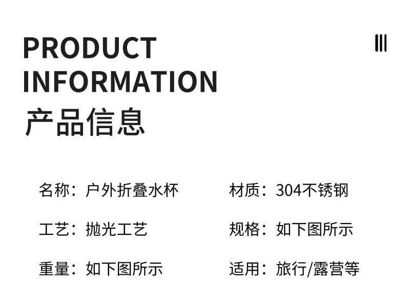 • 304 접는 컵-스몰 사이즈 250ml
