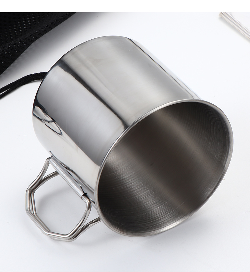 304 스테인레스 스틸 접이식 물 컵 커피 컵 야외 캠핑 피크닉 컵 머그잔 드로스트링 가방 휴대용 세트