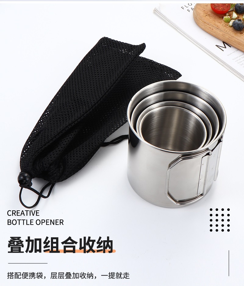• 304 접는 컵-4 조각 그물 가방
