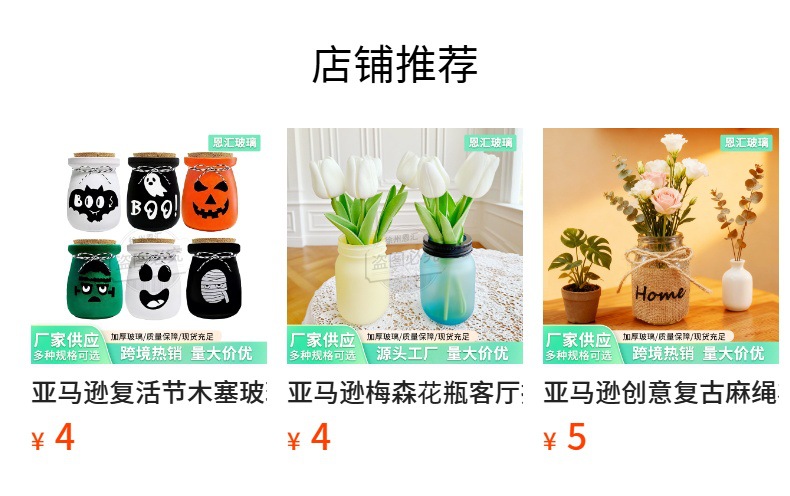 국경을 넘는 신상 메이슨 유리 꽃병, 꽃꽂이용 꽃병, 시골풍 장식품, 고급스러운 거실 테이블용 드라이플라워 꽃병스토어 가기