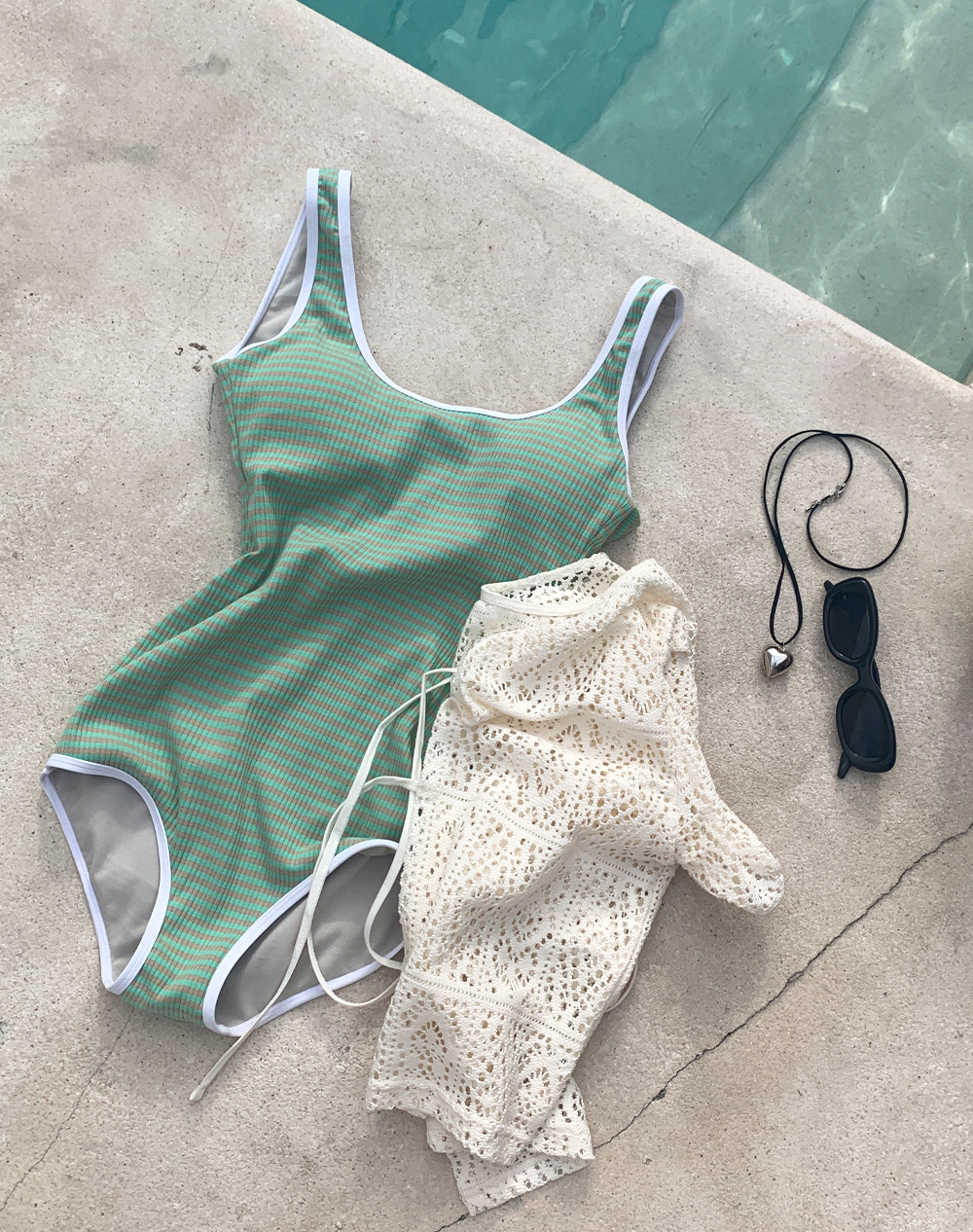 한국 인 작은 신선한 색 줄무늬 수영복 여성용 섹시한 백리스 슬림 핏 비치 홀리데이 수영복