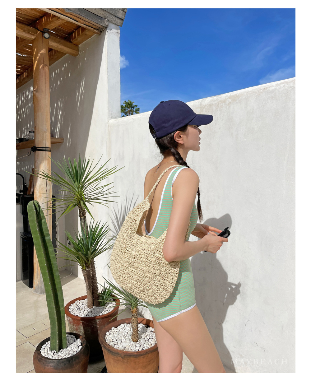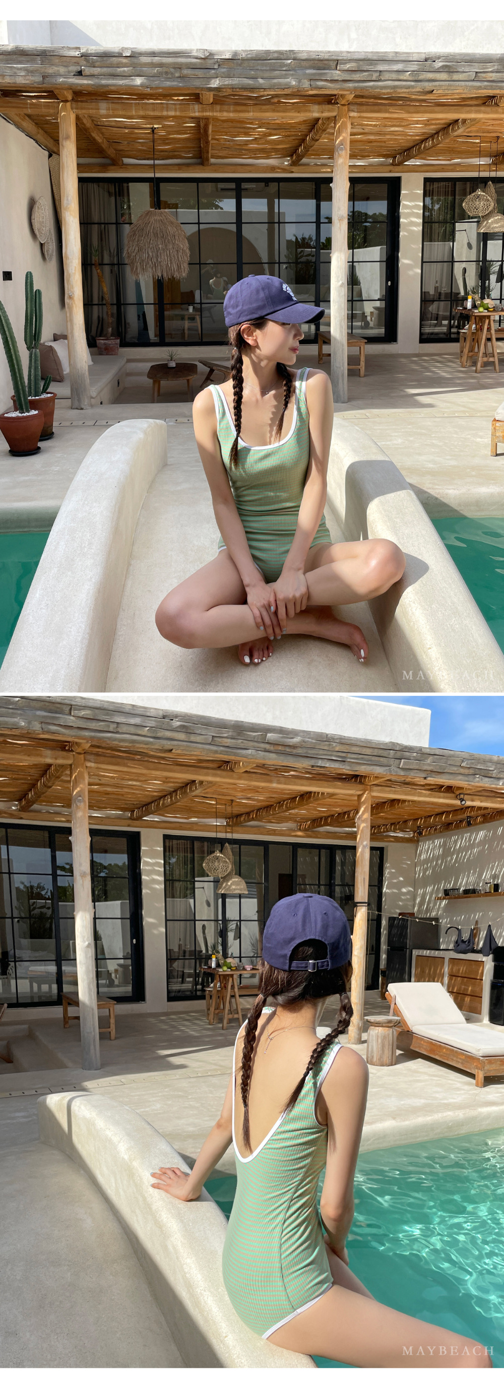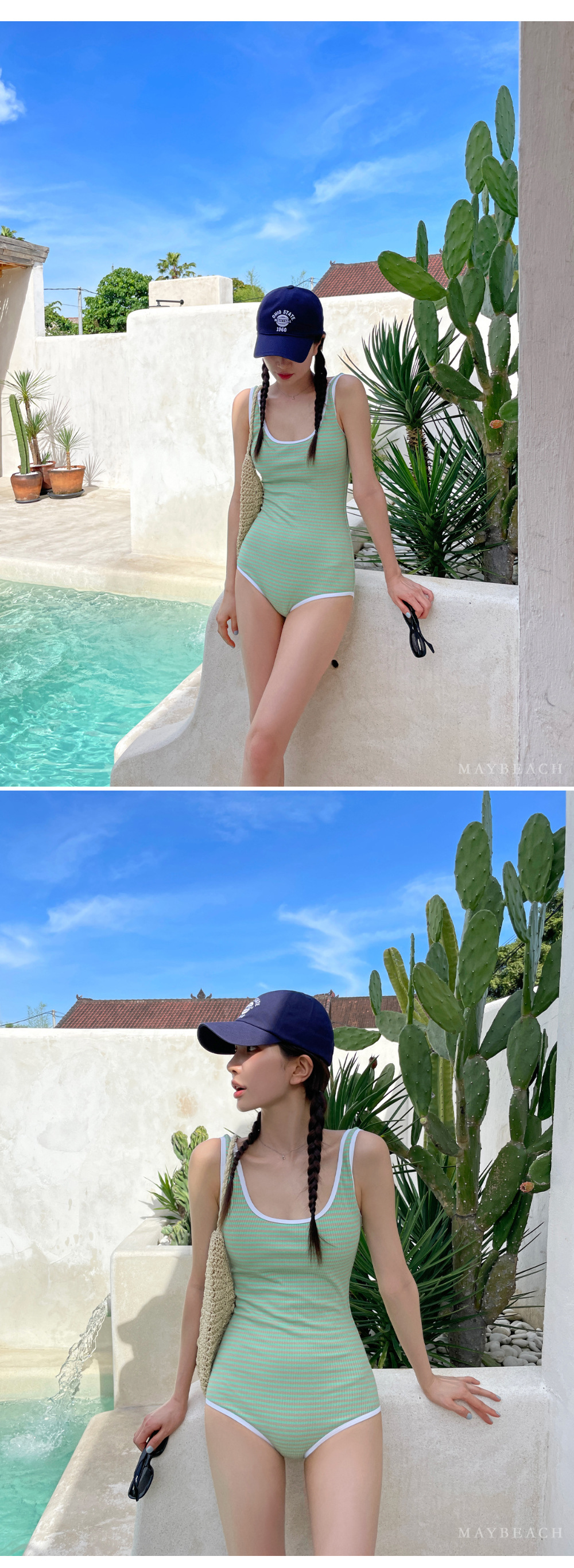 한국 인 작은 신선한 색 줄무늬 수영복 여성용 섹시한 백리스 슬림 핏 비치 홀리데이 수영복스토어 가기