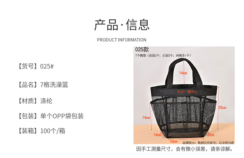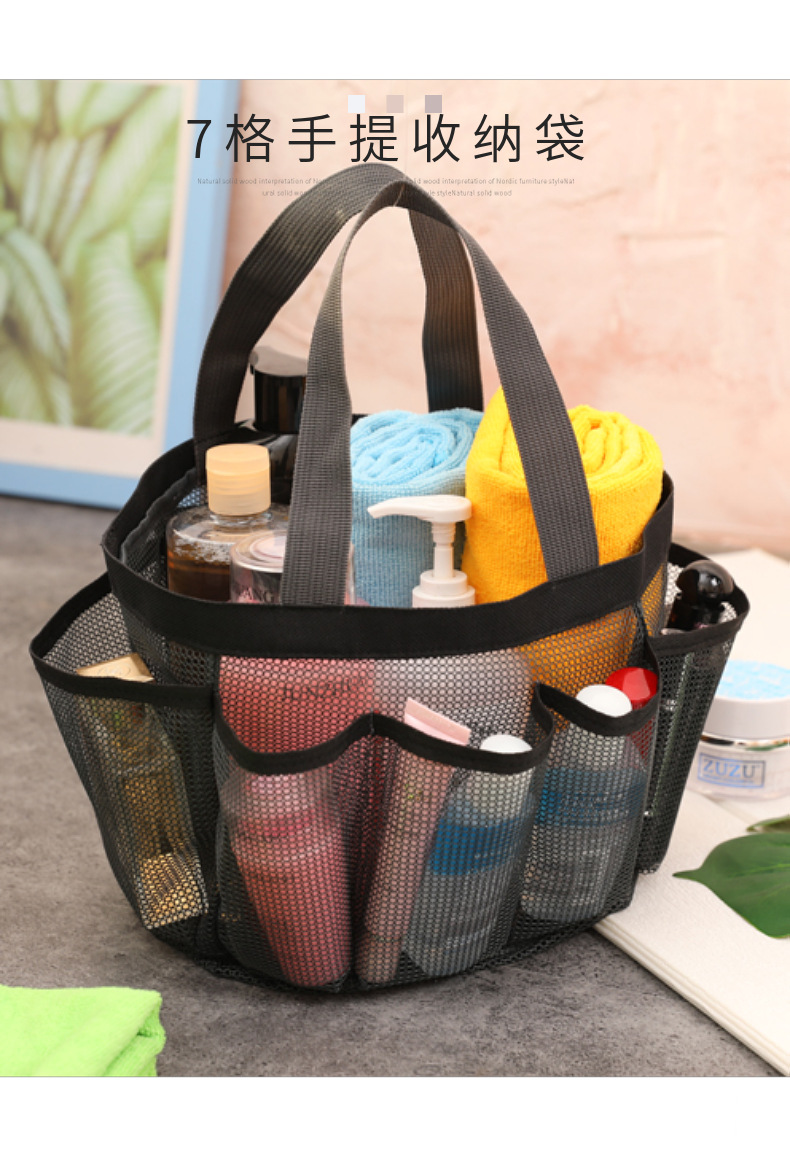 목욕 수영 가방 7 포켓 비치 백 욕실 배수 메쉬 목욕 바구니 목욕 화장품 보관 가방 도매