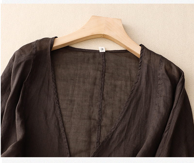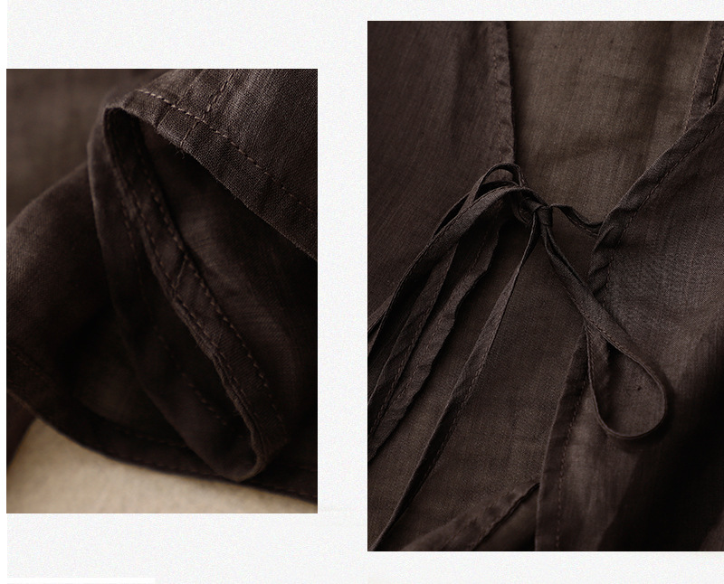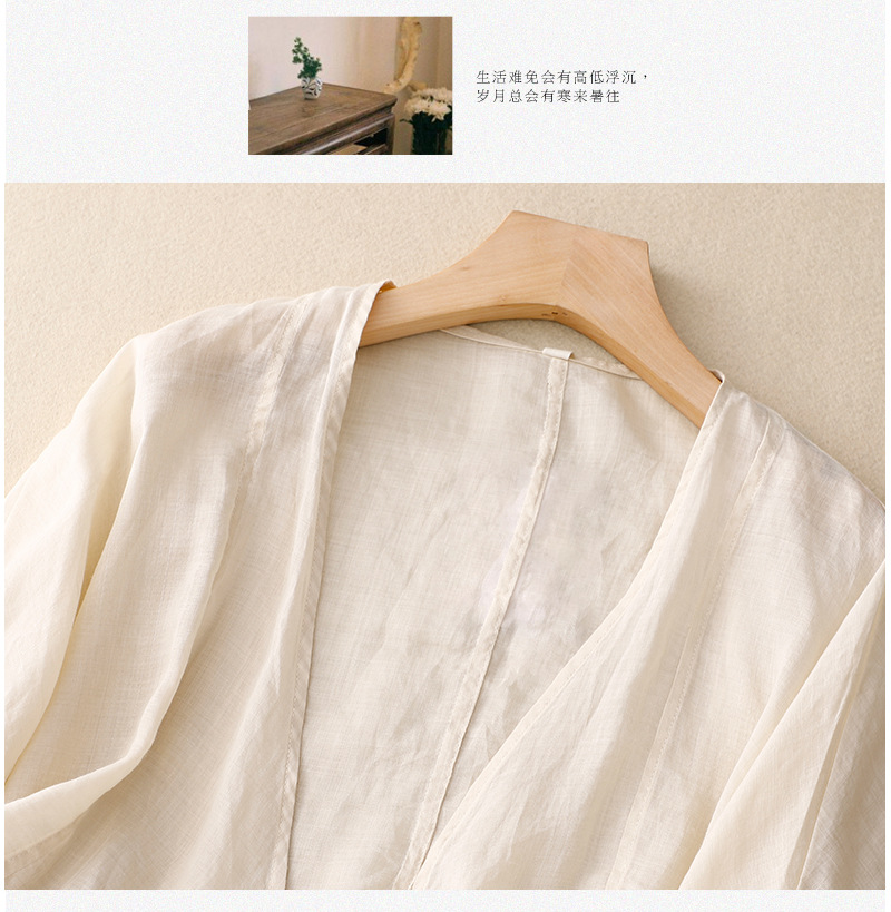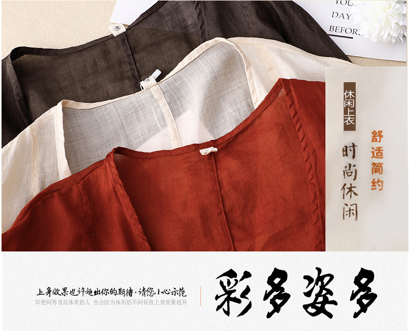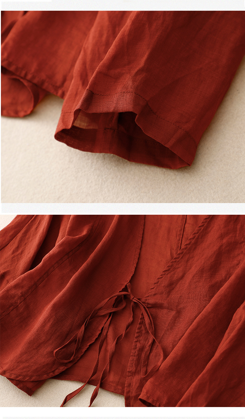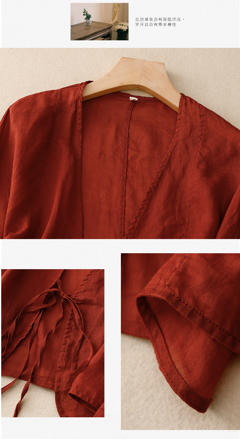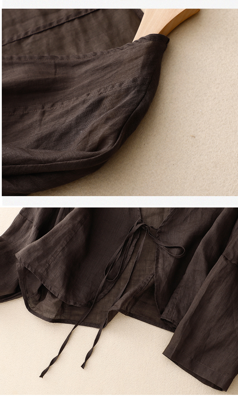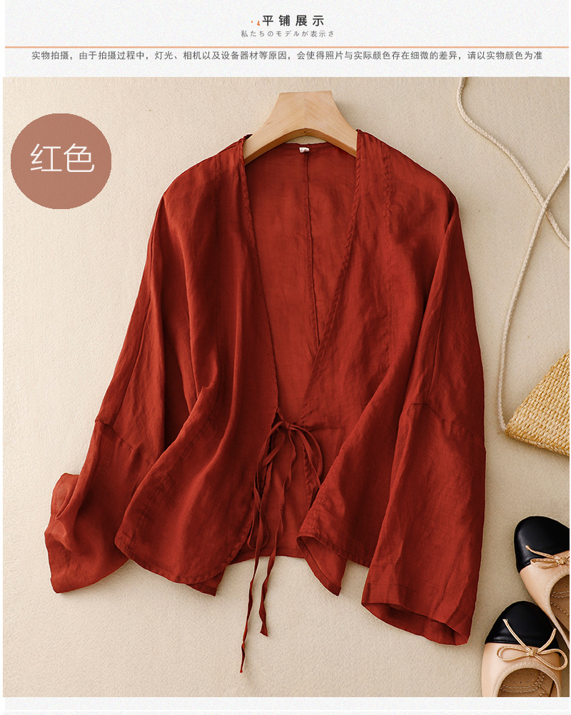 여름 일본과 한국의 새로운 도착 빈티지 예술적 V-Neck 코튼 및 리넨 레이스 업 카디건 태양 보호 의류 느슨한 올 매치 셔츠 여성용 아우터웨어스토어 가기