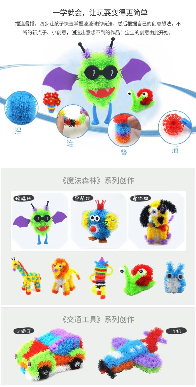 품종 푹신한 공 핀치 공 어린이 DIY 수제 퍼즐 조립 어린이 유아 교육 더블 후크 조립 빌딩 블록 장난감스토어 가기