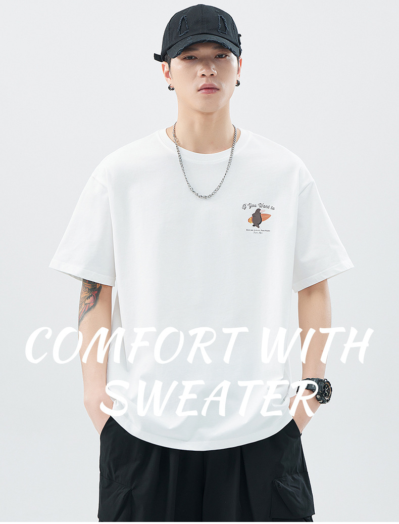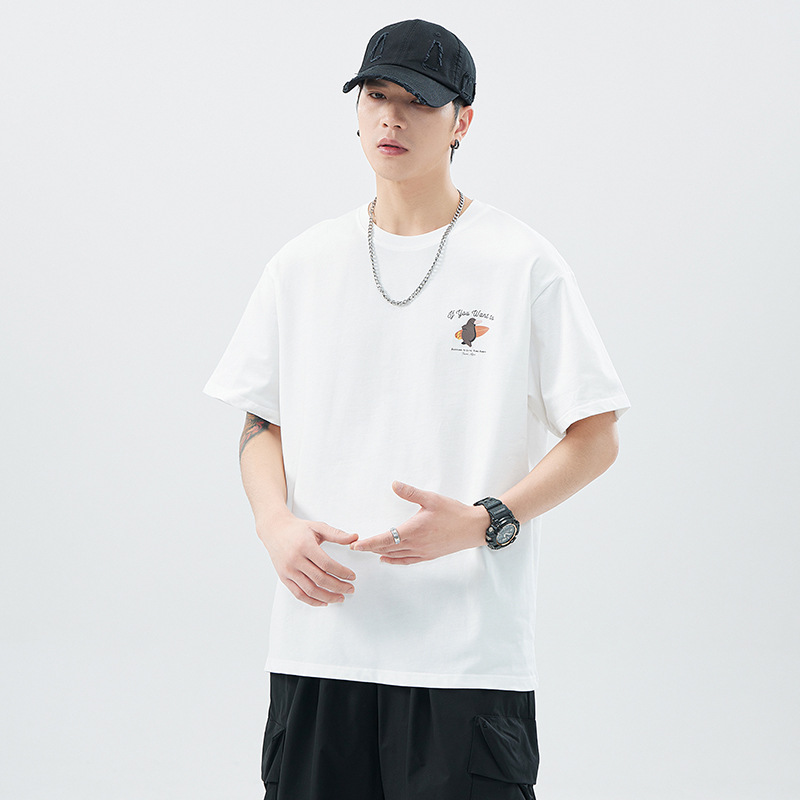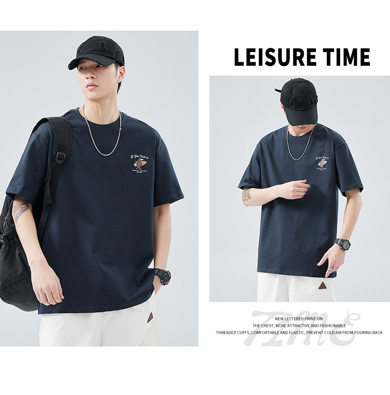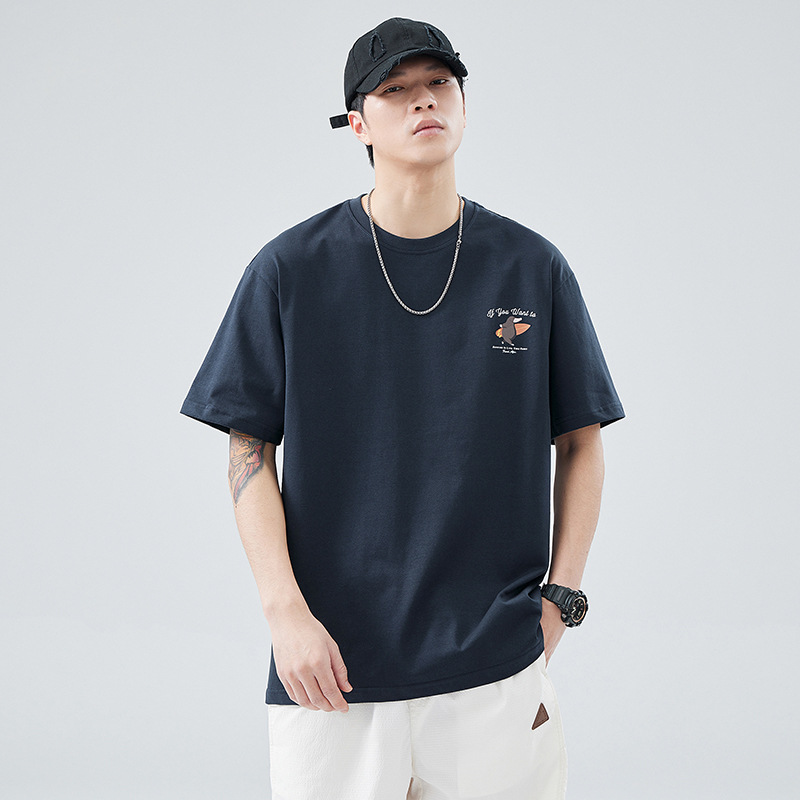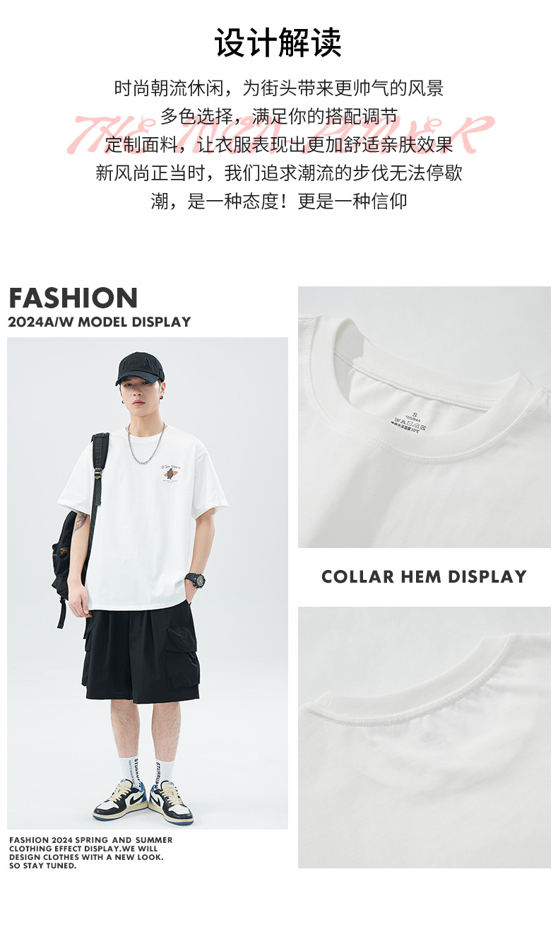 헤비 코튼 반팔 티셔츠 남자 2024 년 여름 뉴베이스 셔츠 루즈 플러스 사이즈 남자 아메리칸 캐주얼 티셔츠스토어 가기