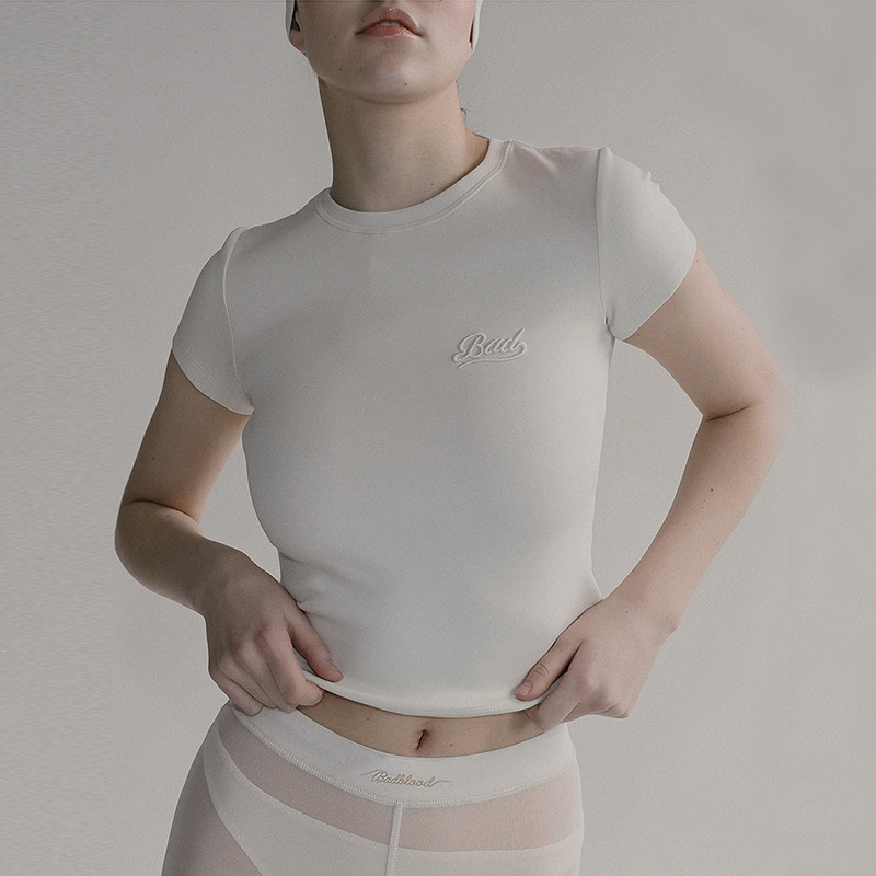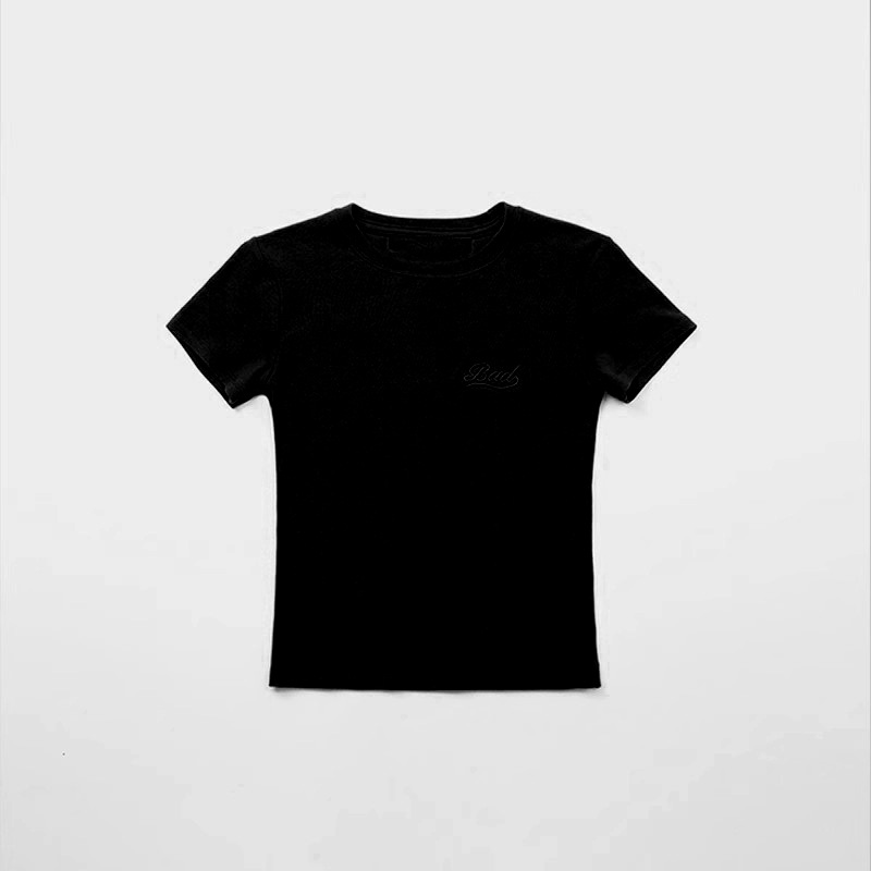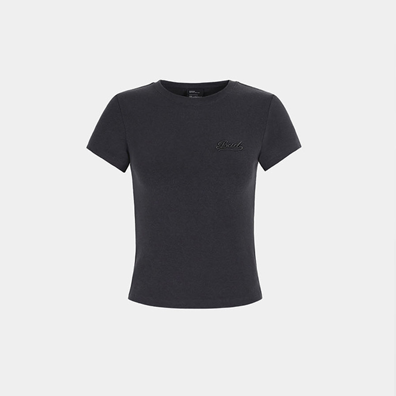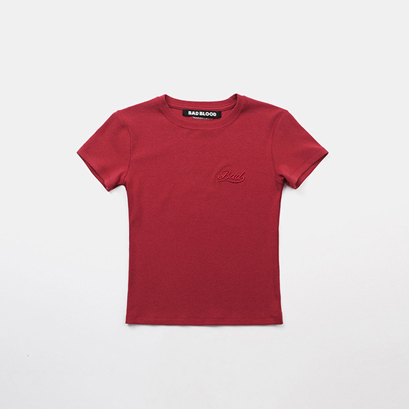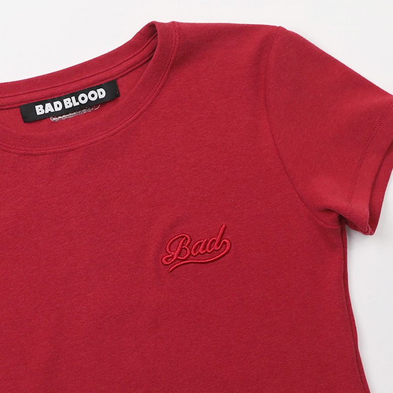 한국어 badblood bcac 시리즈 반팔 티셔츠 여성 짧은 미국 매력 자수 슬림 라운드 넥 탑 트렌디스토어 가기