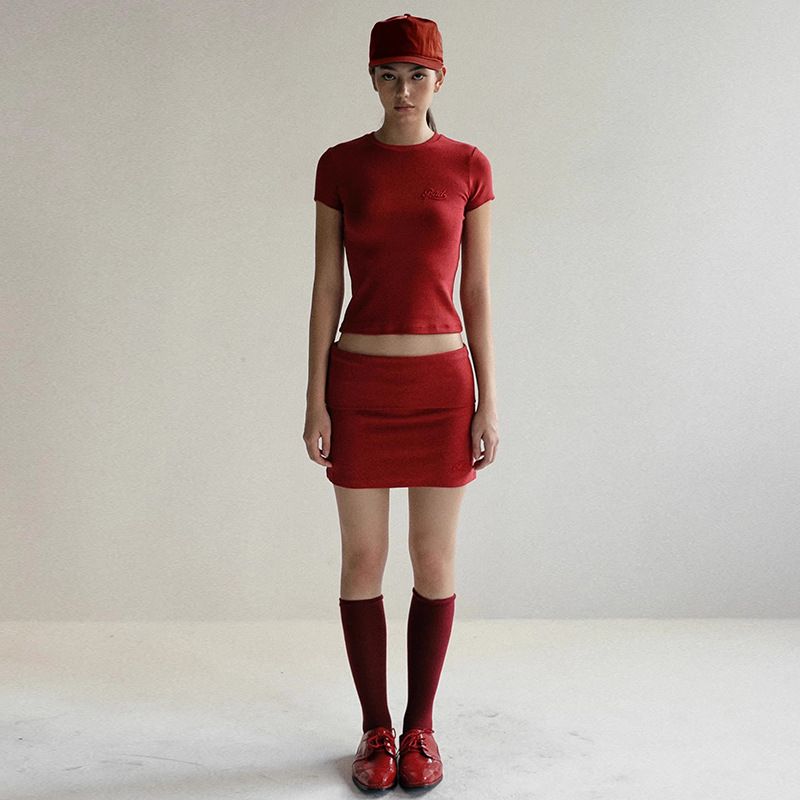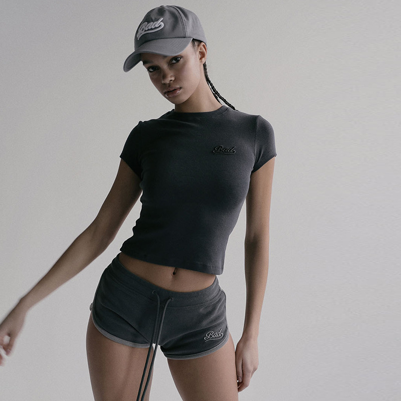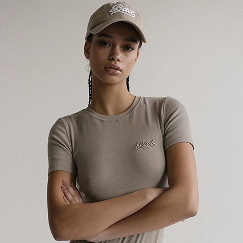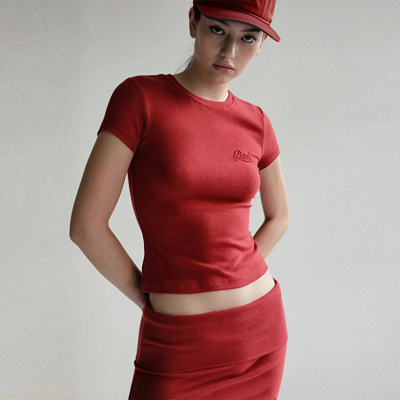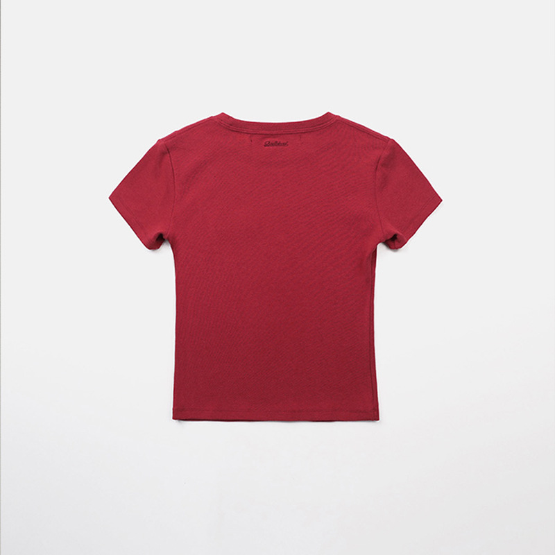 한국어 badblood bcac 시리즈 반팔 티셔츠 여성 짧은 미국 매력 자수 슬림 라운드 넥 탑 트렌디스토어 가기