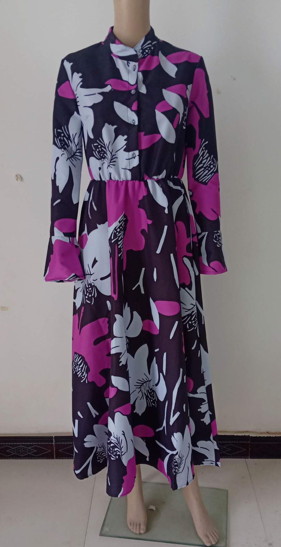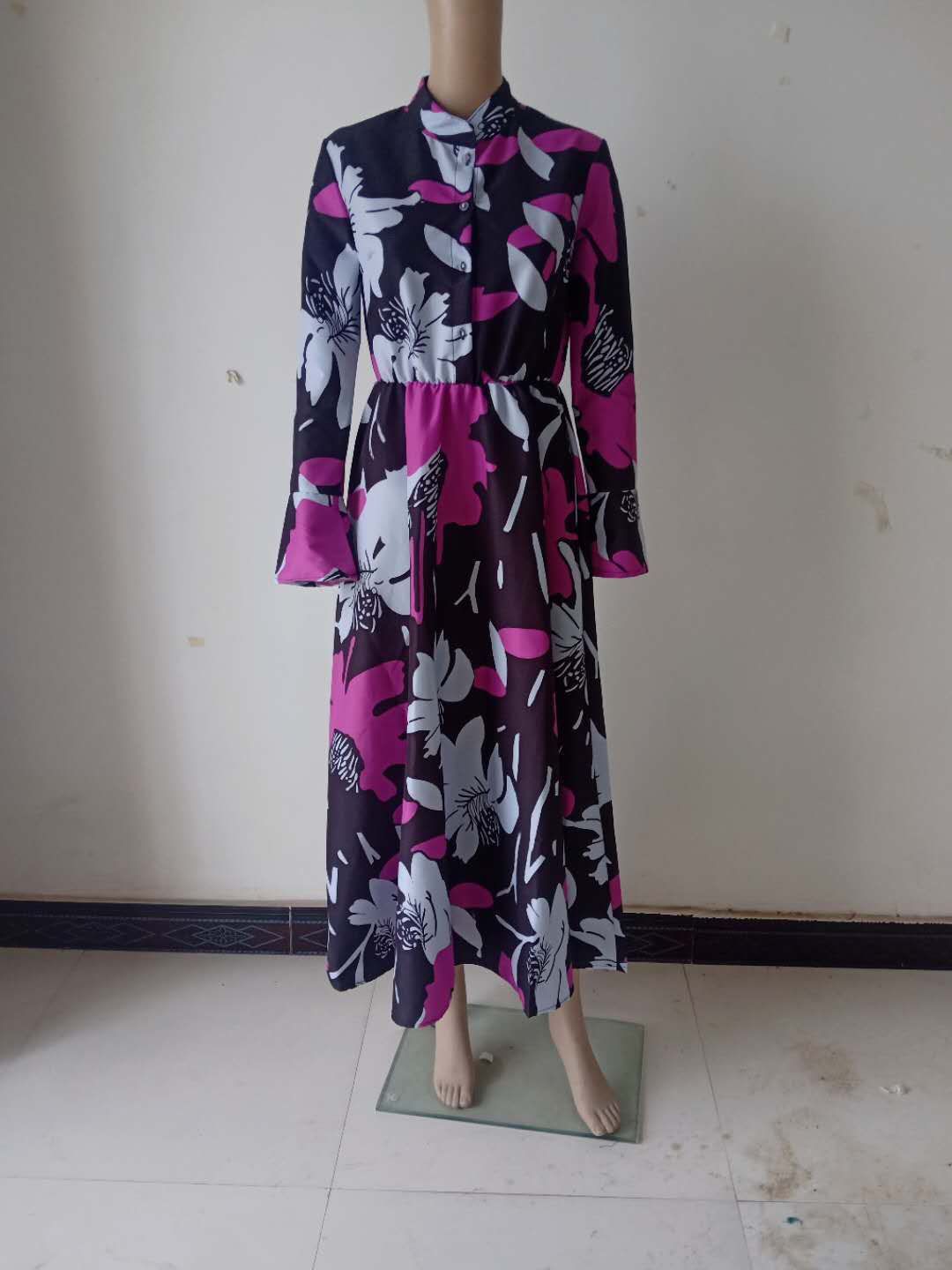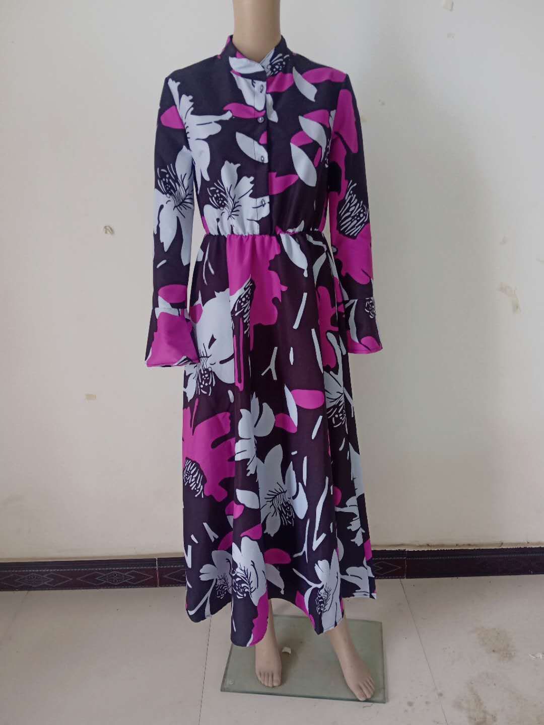 국경을 넘는 새로운 유럽과 미국의 복고풍 인쇄 진자 4 색 슬림 패션 궁전 원피스 아마존 머리카락스토어 가기