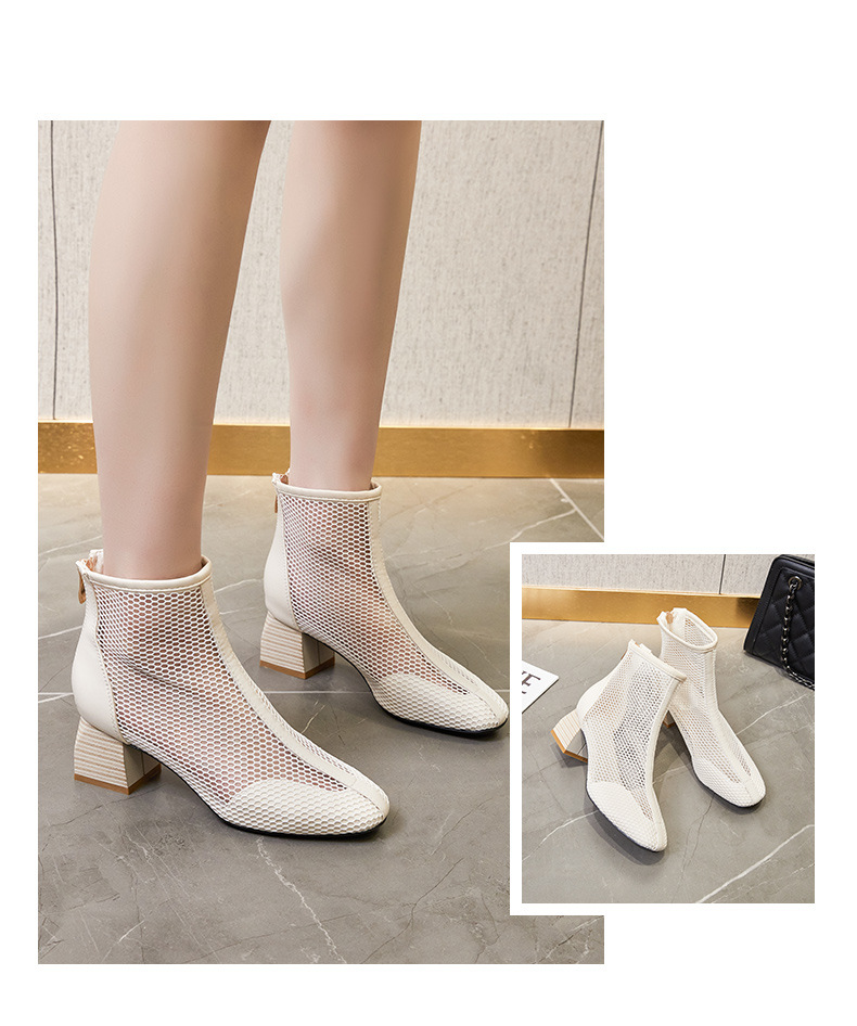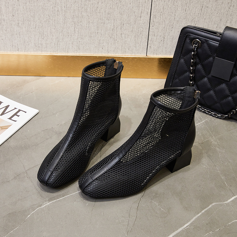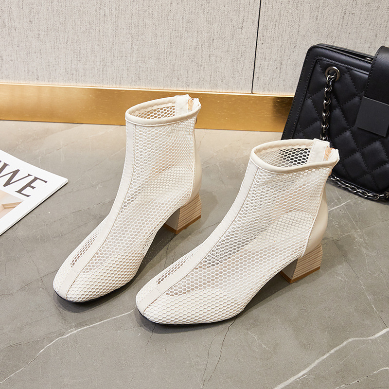 새로운 패션 하이힐 메쉬 샌들 여성 여름 빈티지 스타일 통기성 숏부츠 여성 여름 통기성 샌들 키높이 뾰족코