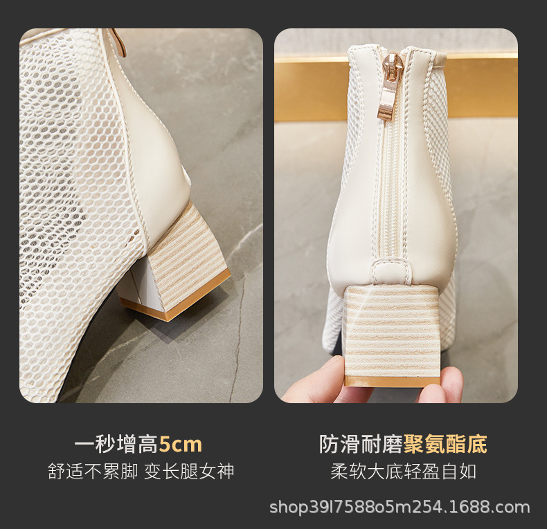 새로운 패션 하이힐 메쉬 샌들 여성 여름 빈티지 스타일 통기성 숏부츠 여성 여름 통기성 샌들 키높이 뾰족코스토어 가기