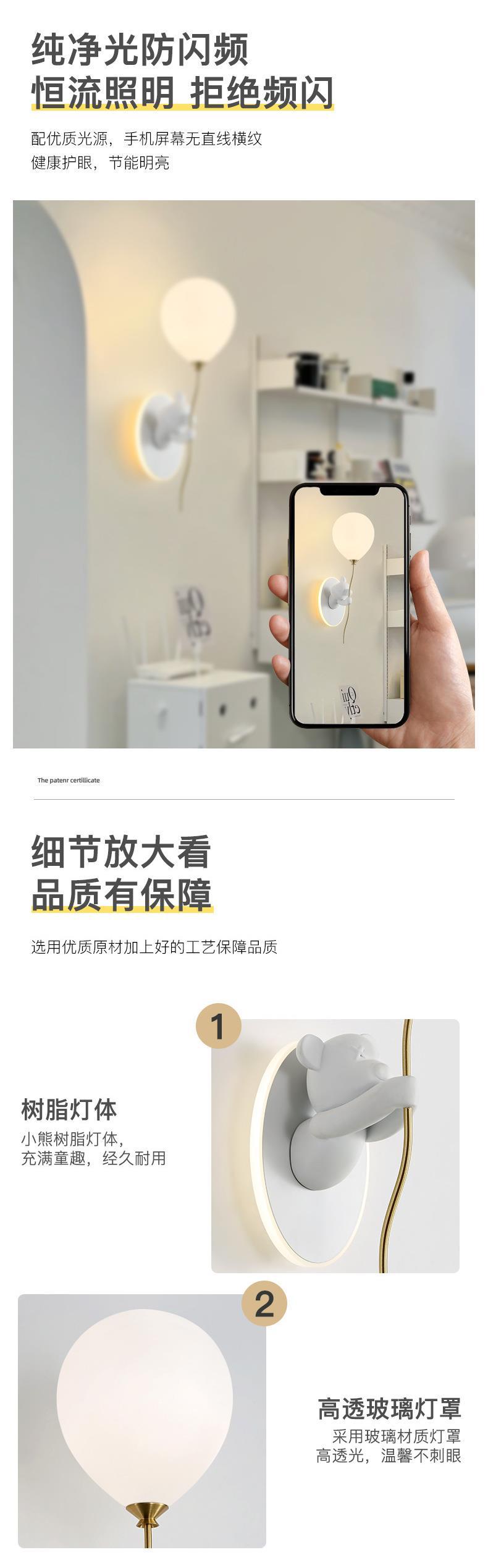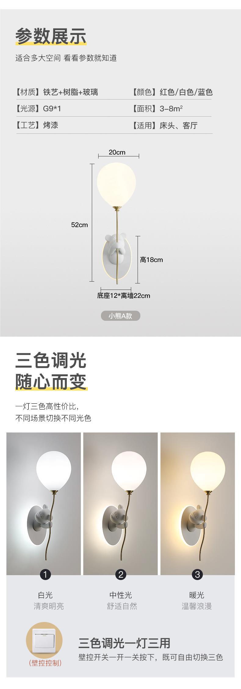 소년과 어린이 방 벽 램프 북유럽 창조적 인 만화 폭력 곰 분위기 램프 귀여운 소녀의 방 침실 램프
