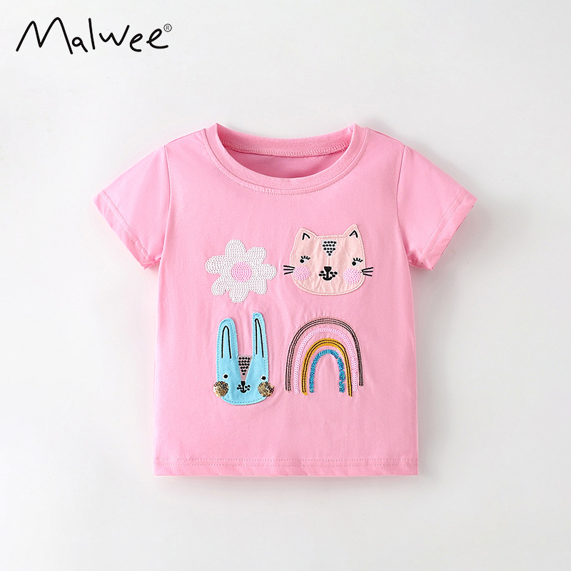 말위 소녀 짧은 소매 여름 새로운 유럽과 미국 어린이 레저 라운드 넥 서양식 어린 소녀 티셔츠 탑스토어 가기