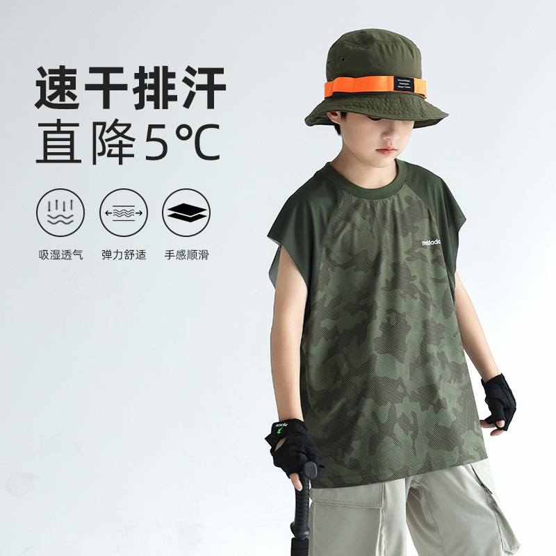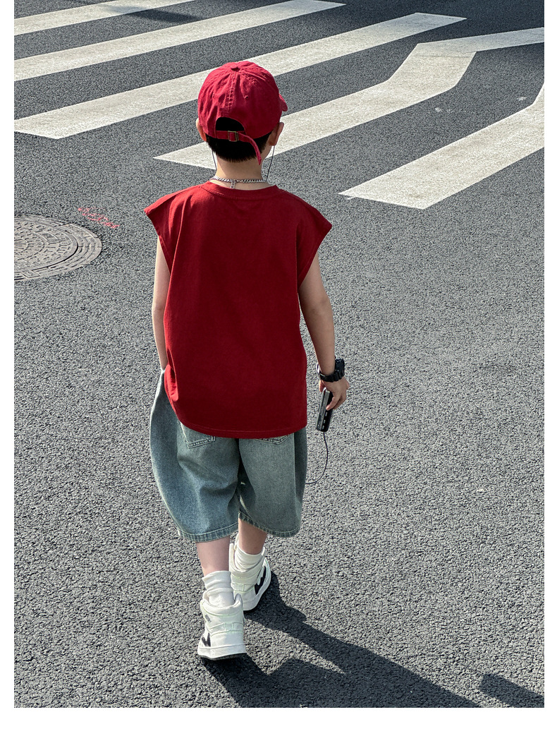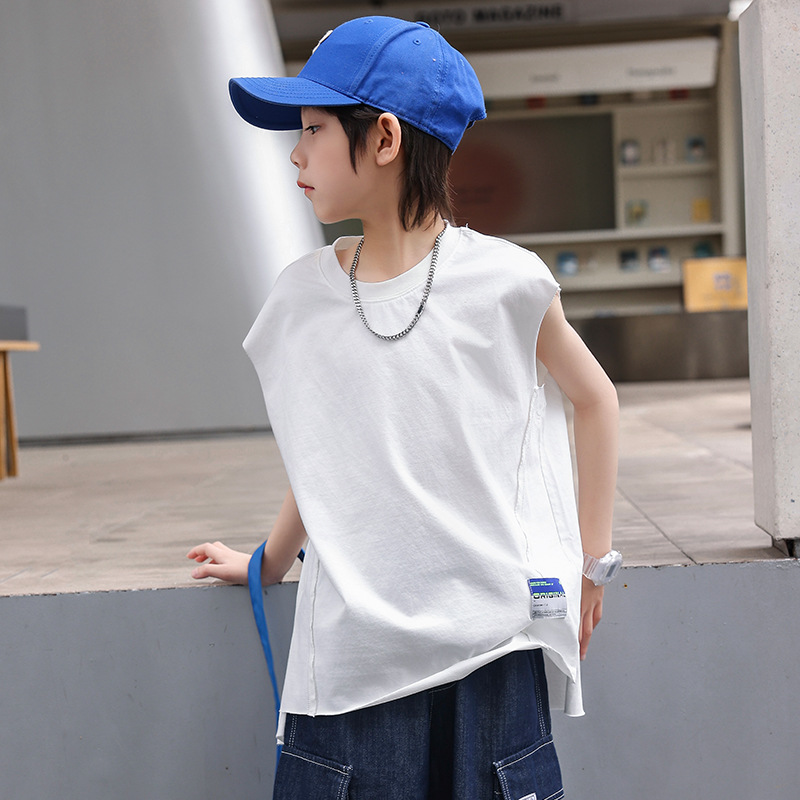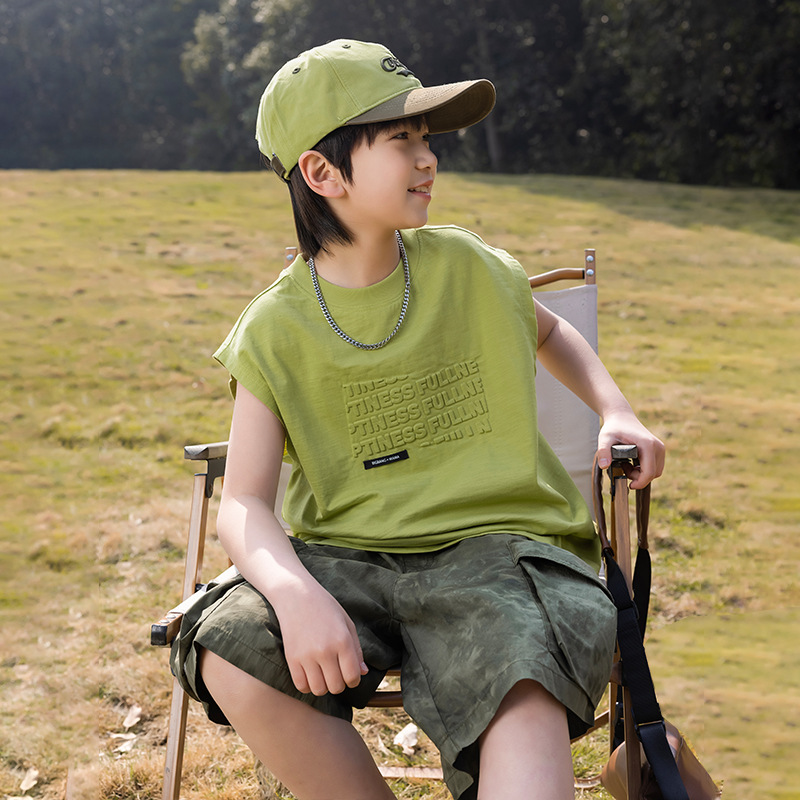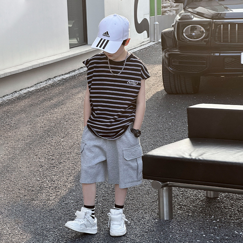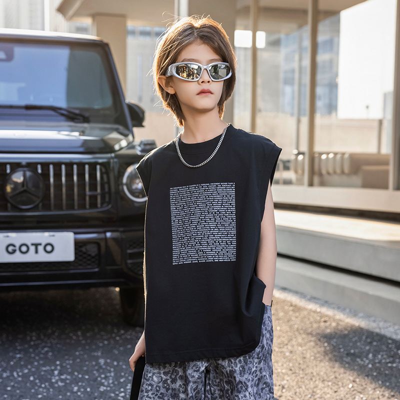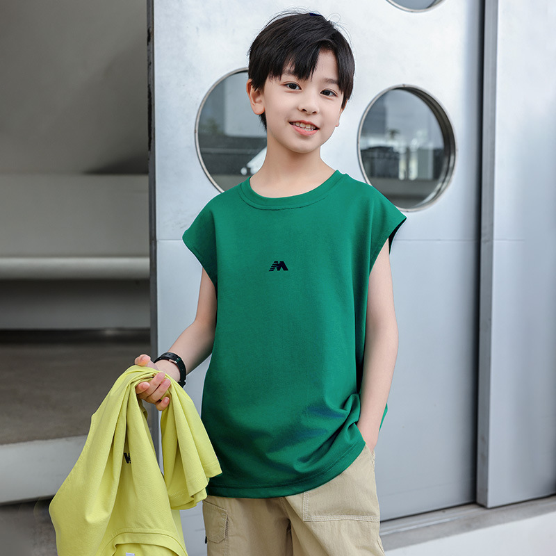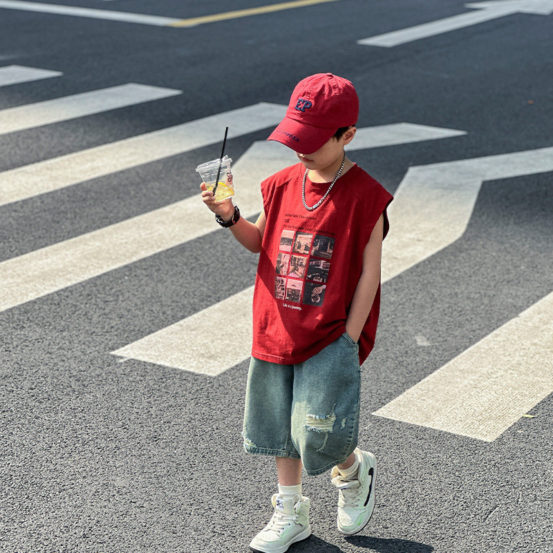 팬더위안위안 2025 여름 신상 아동 민소매 티셔츠 인기 컬렉션 남아 조끼 스포츠 조끼 티셔츠 여름옷