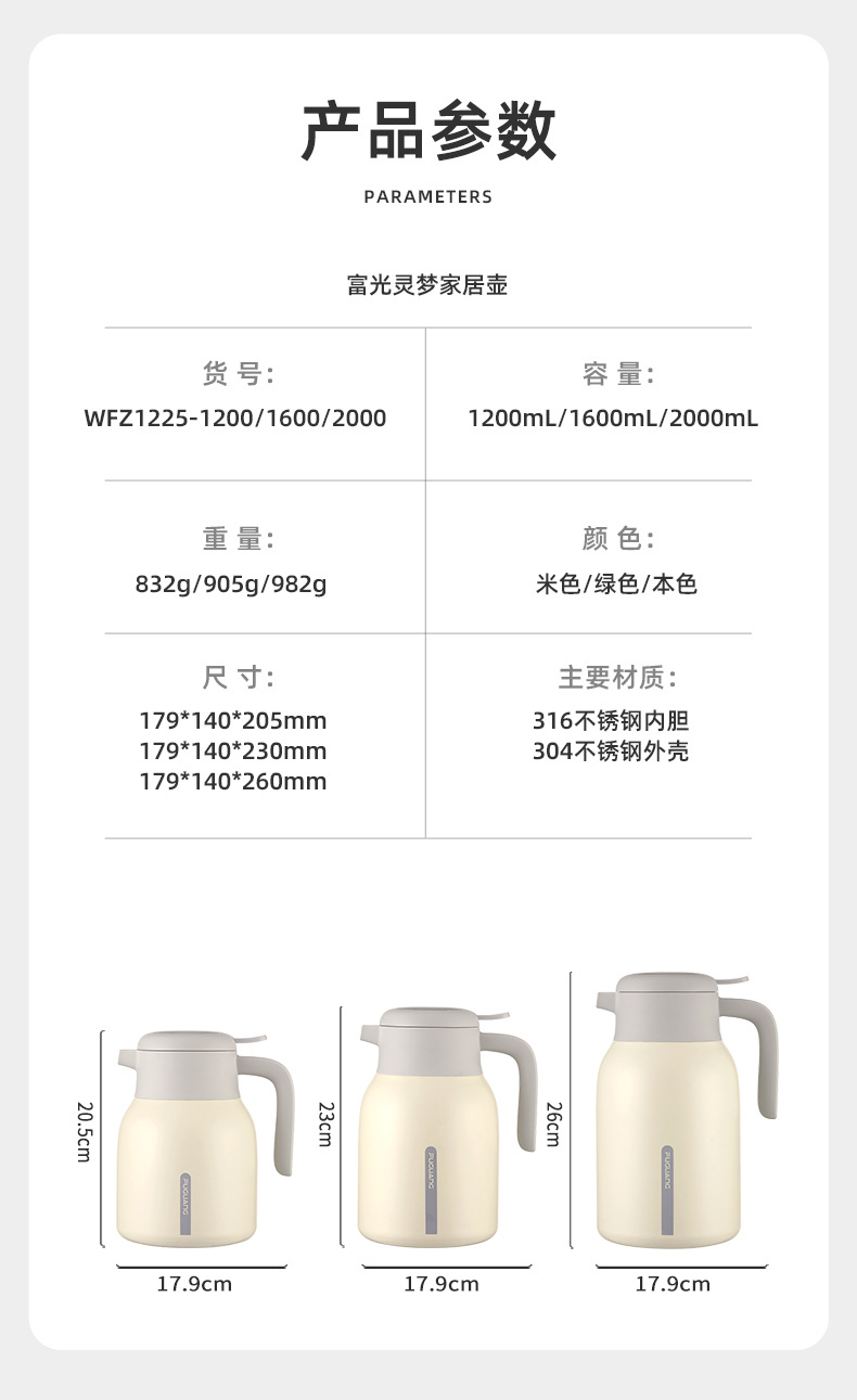 푸앙 보온병 가정용 대용량 열 절연 주전자 스테인레스 스틸 주전자 학생 보온병 기숙사 보온병