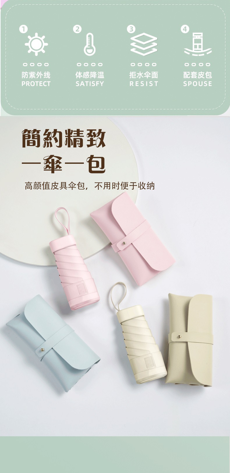국경 간 미니 가방 우산 써니 비 이중 사용 우산 선물 캡슐 우산 선 스크린 햇살 우산 인쇄 가능한 로고 광고 우산