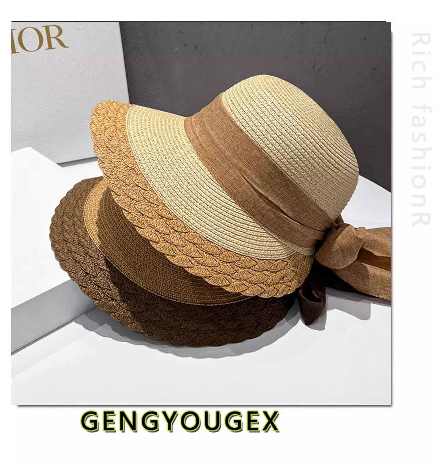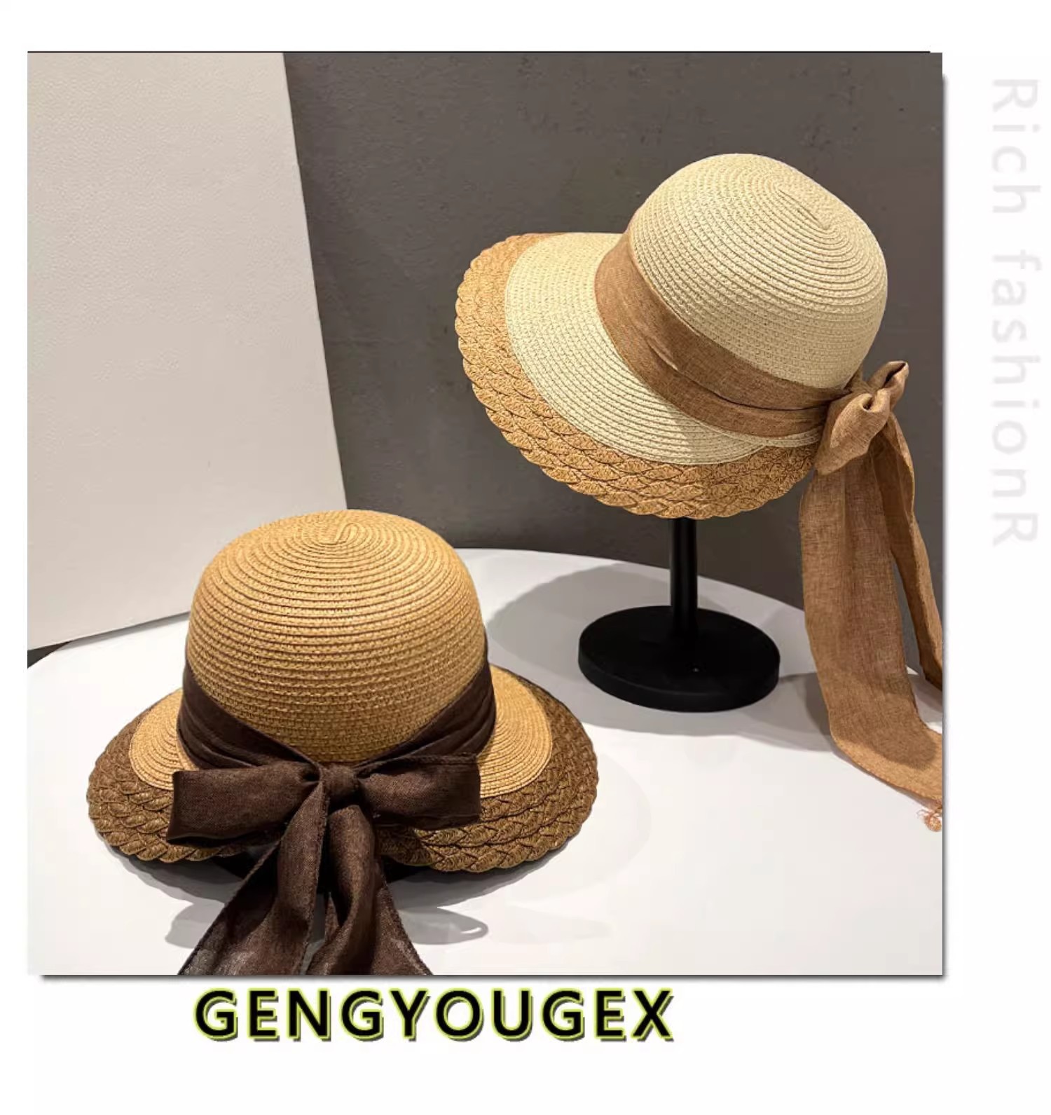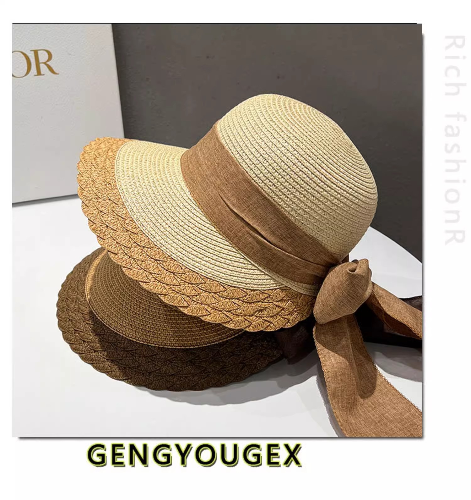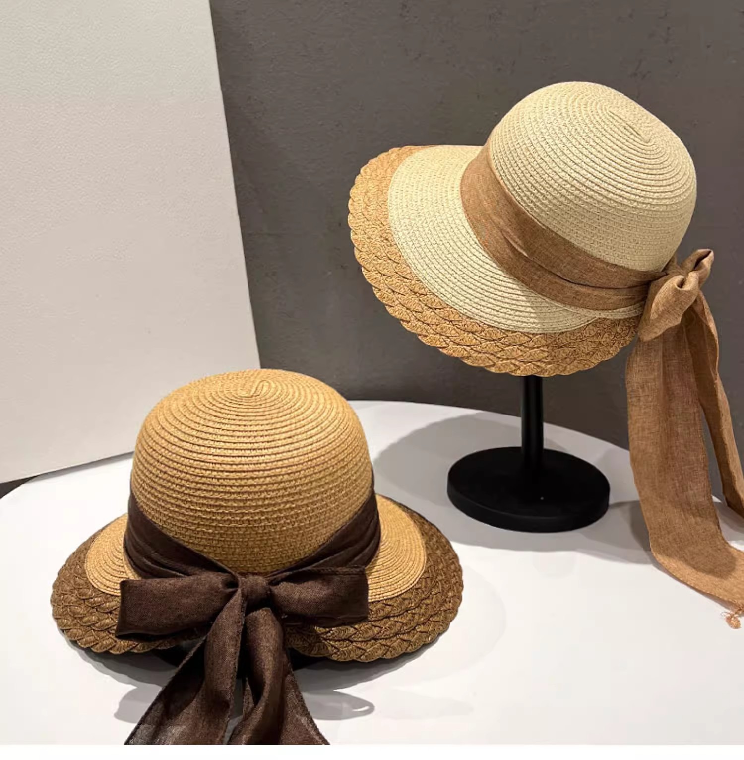 모자 여성의 간단한 여행 썬 스크린 밀짚 태양 모자 봄과 여름 큰 Eave 레이스 새틴 활 어부스토어 가기