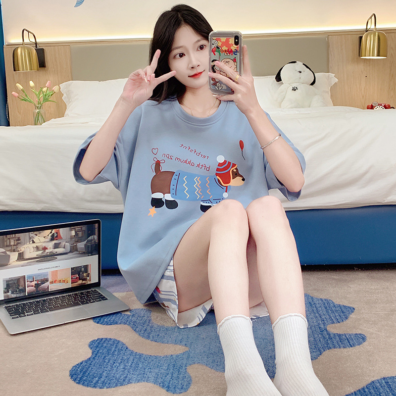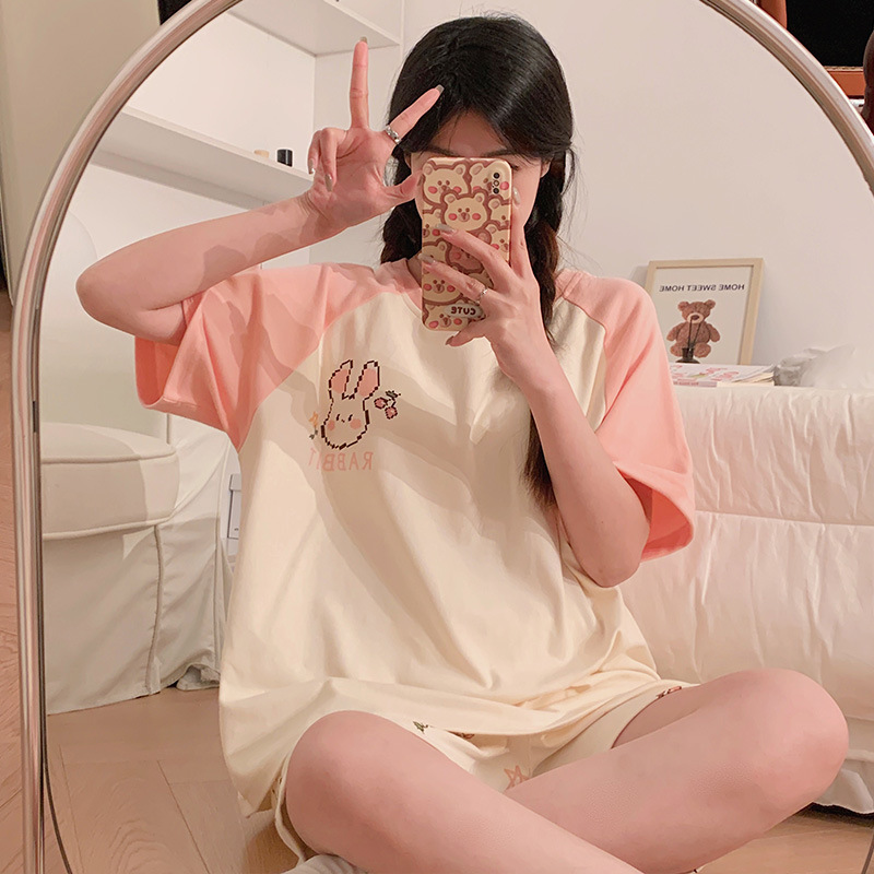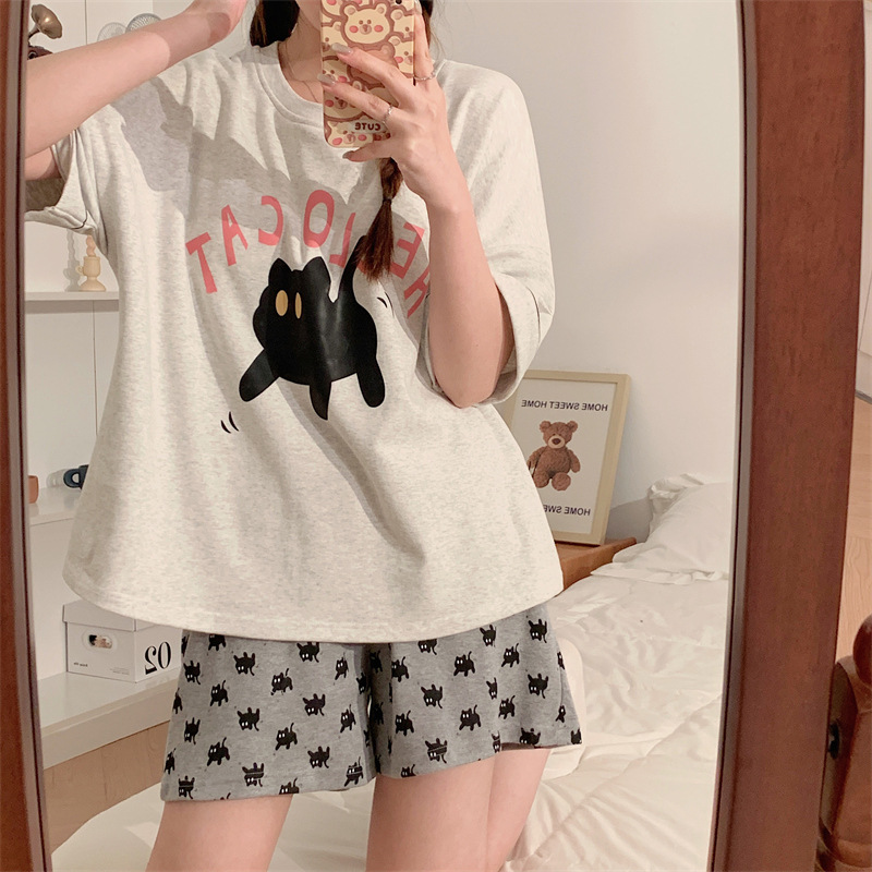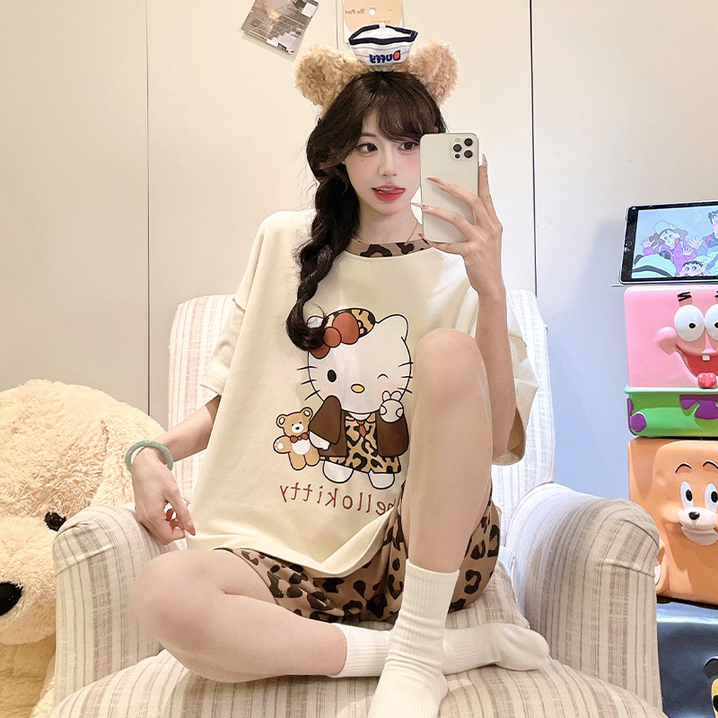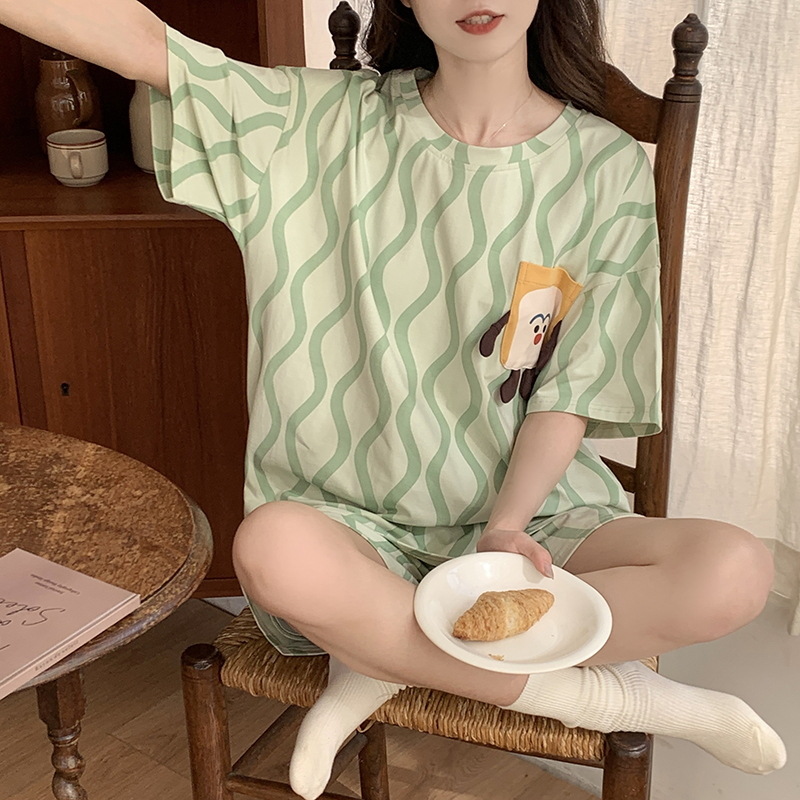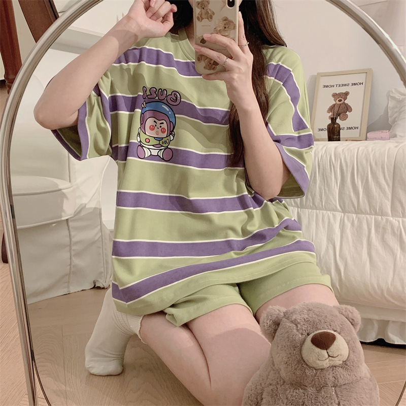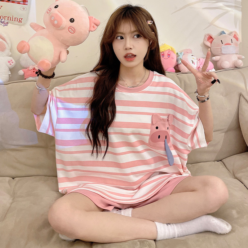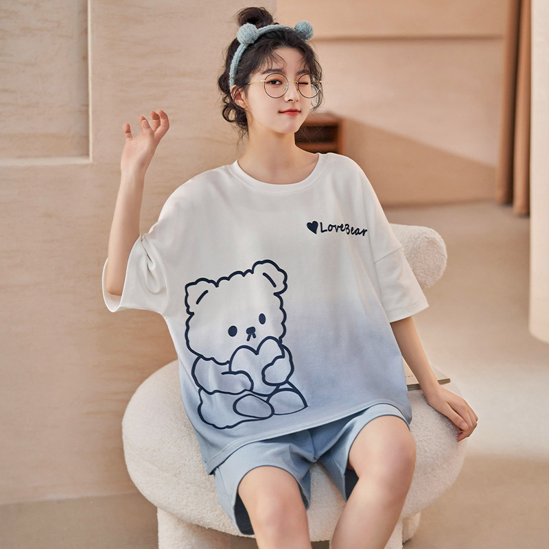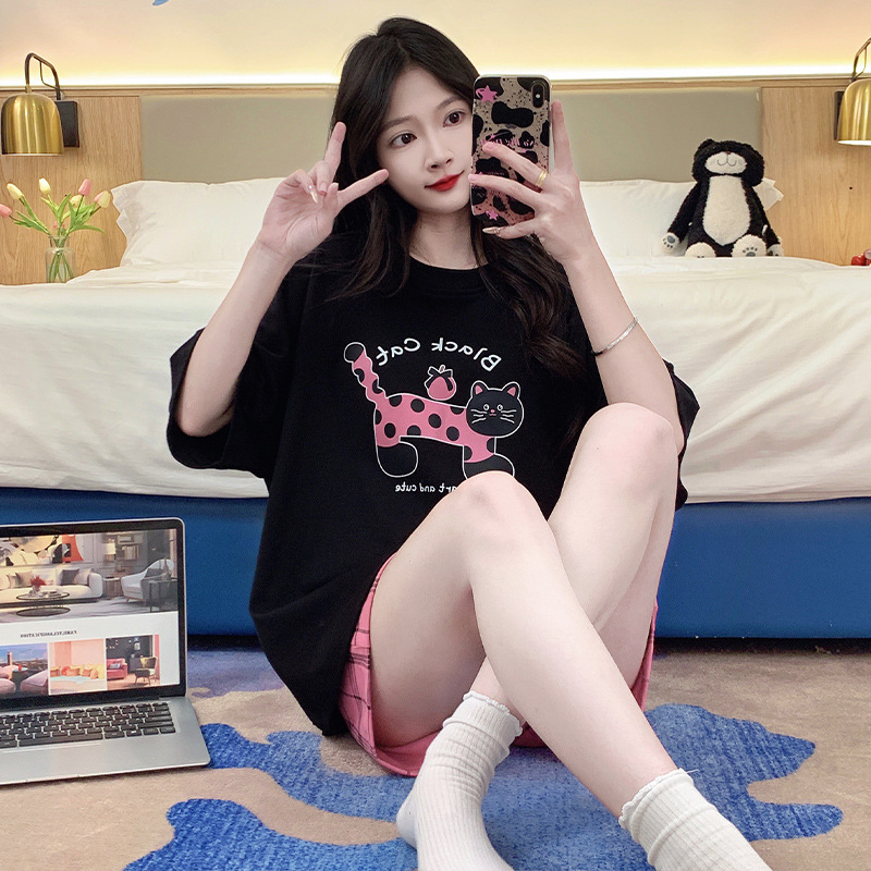 2026 여성용 반팔 잠옷 여름용 얇은 만화 캐릭터 소녀 학생용 라운드넥 여름용 홈웨어 세트(외부에서 착용 가능)스토어 가기