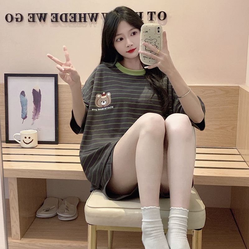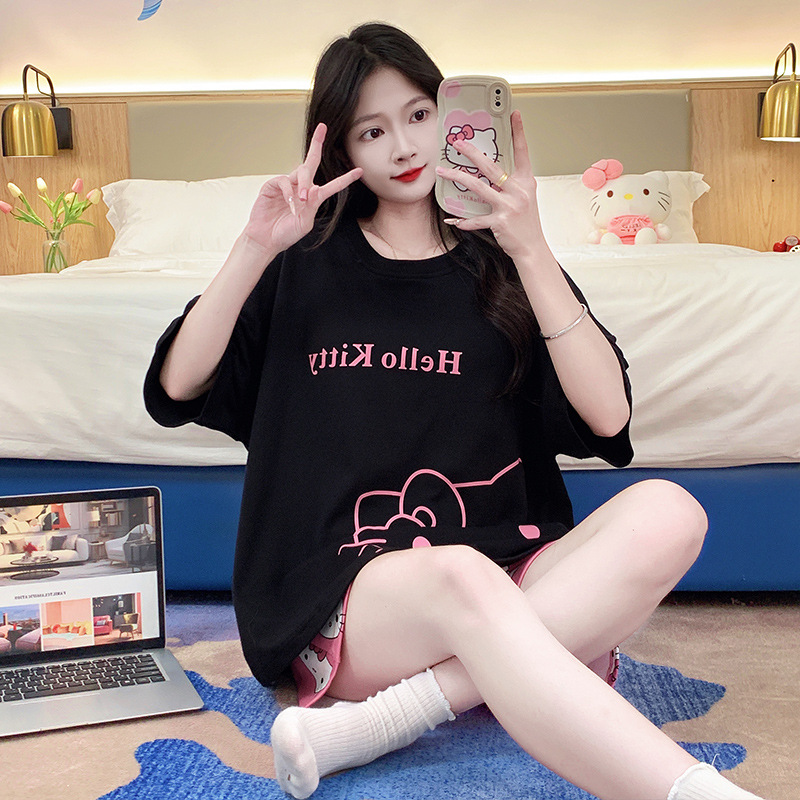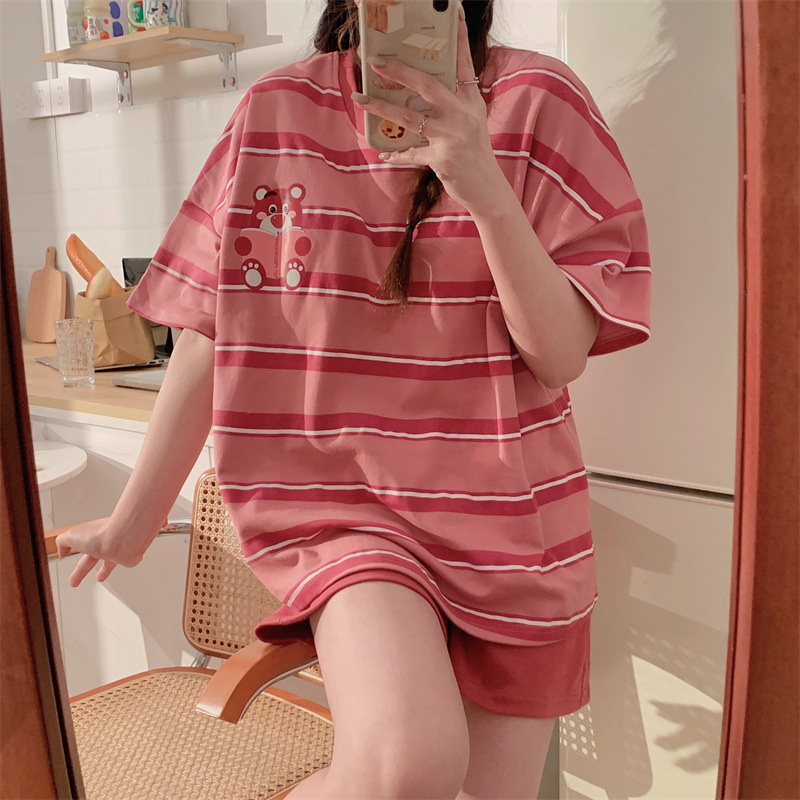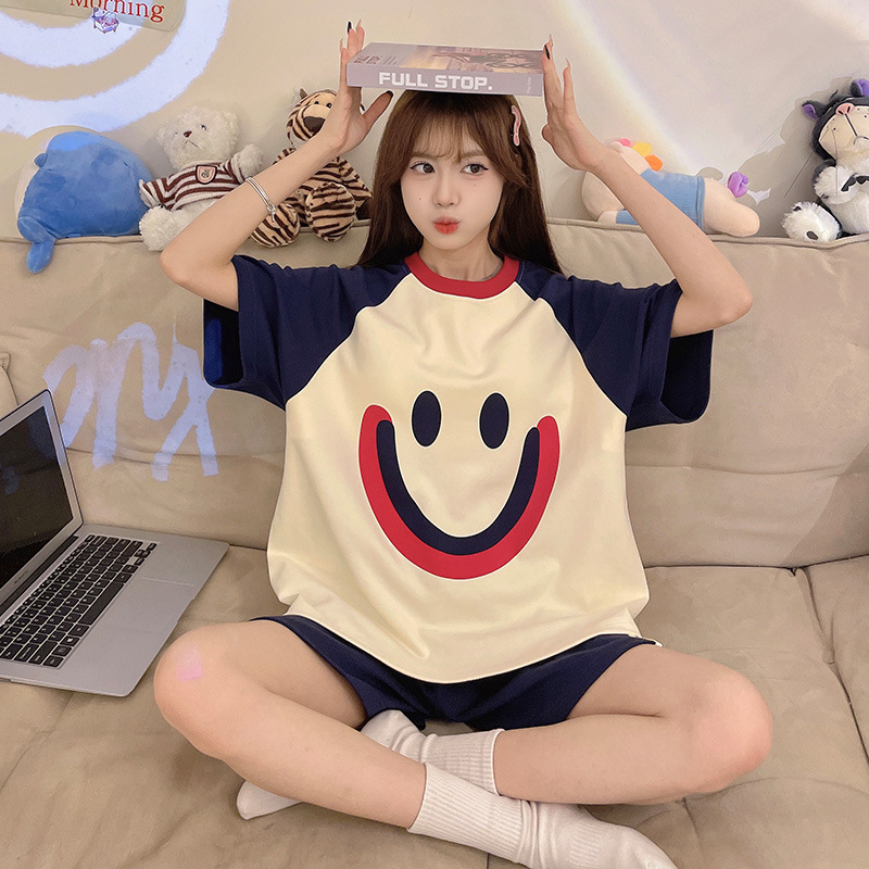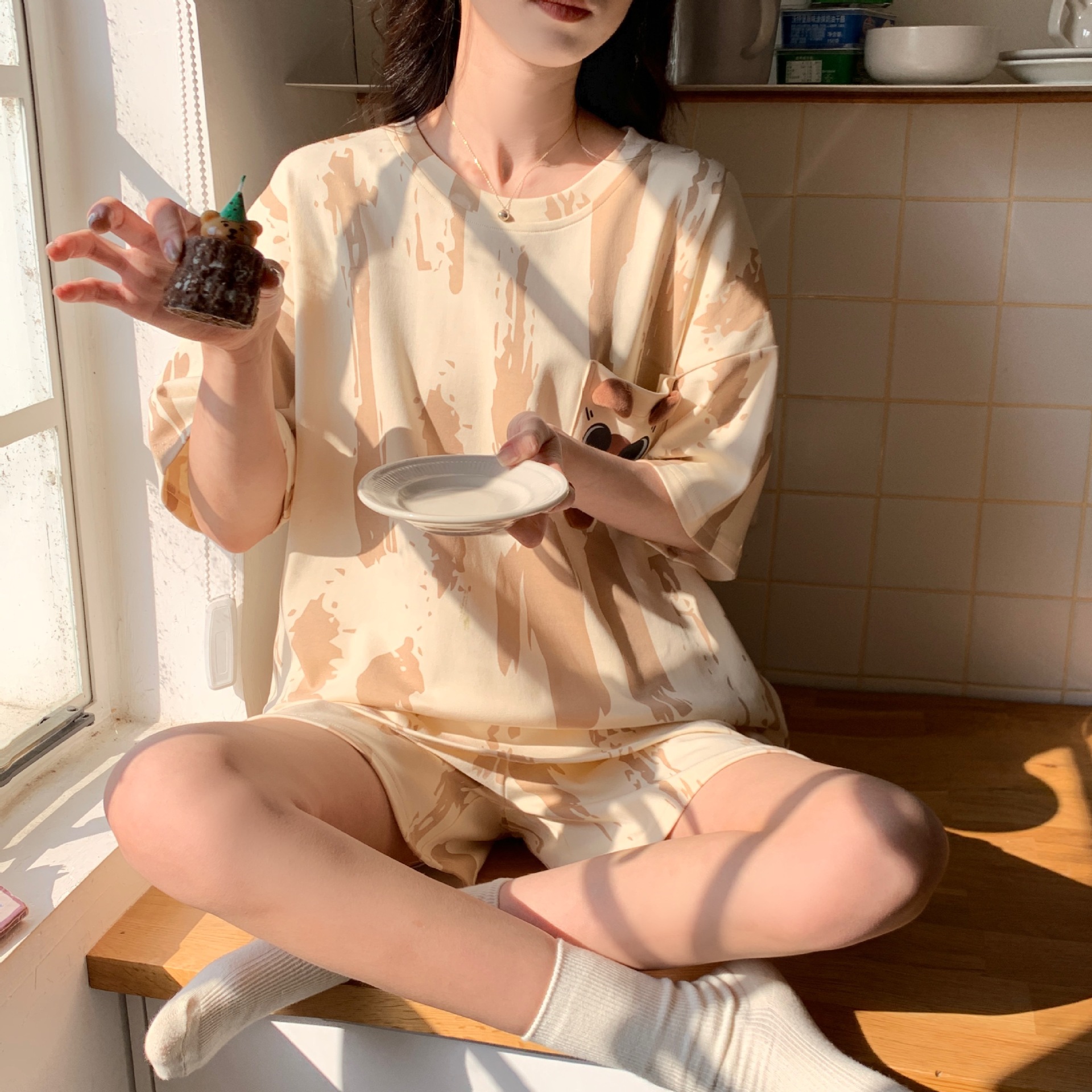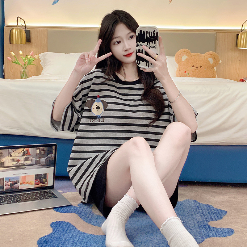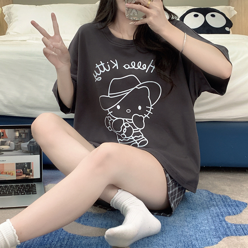 2026 여성용 반팔 잠옷 여름용 얇은 만화 캐릭터 소녀 학생용 라운드넥 여름용 홈웨어 세트(외부에서 착용 가능)스토어 가기
