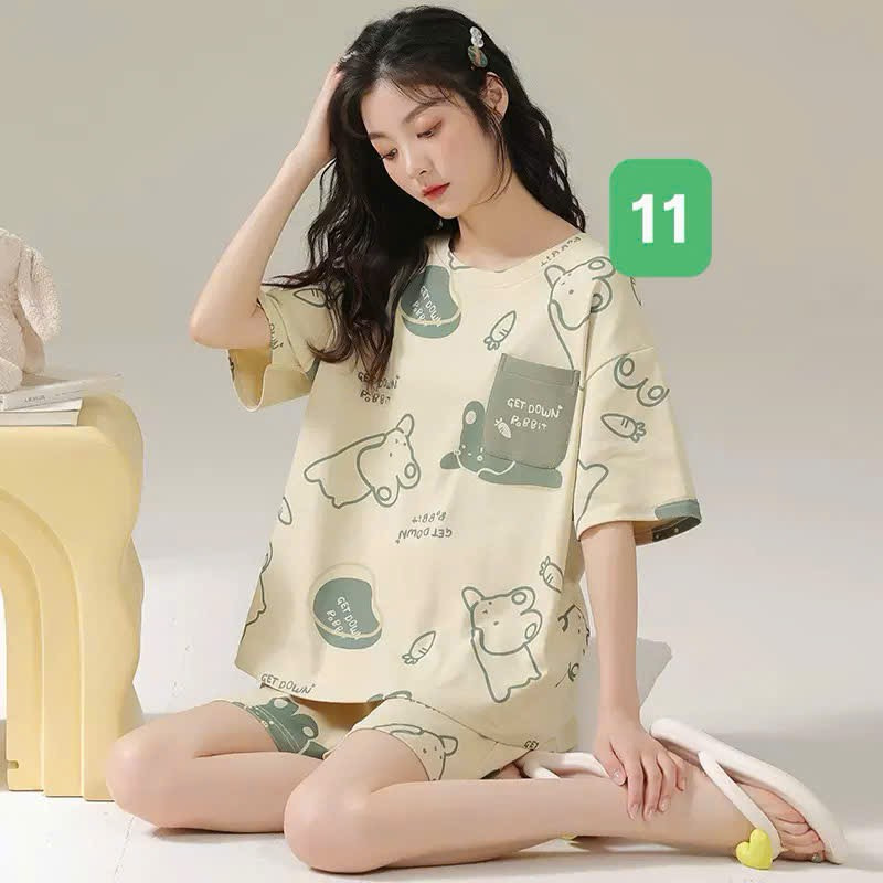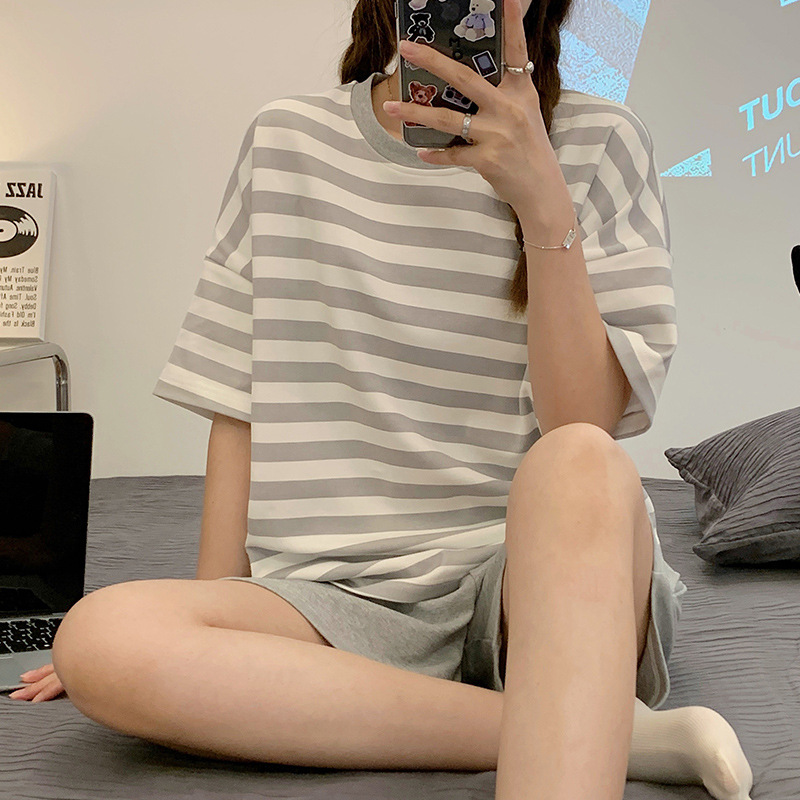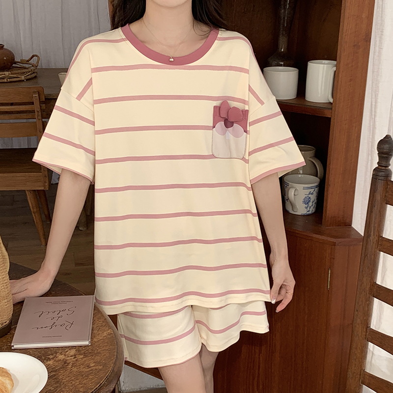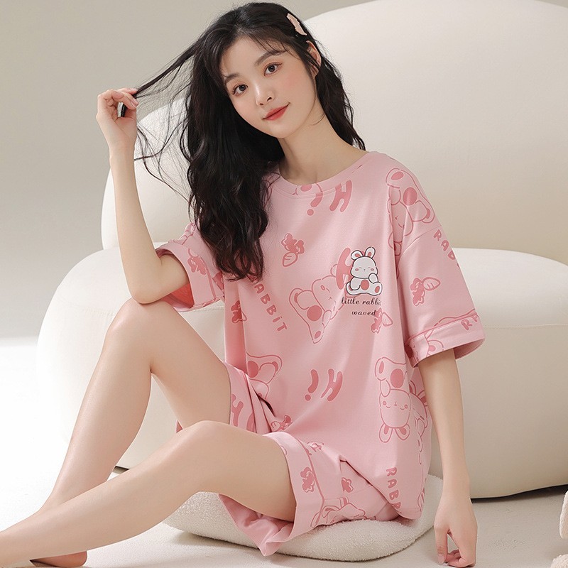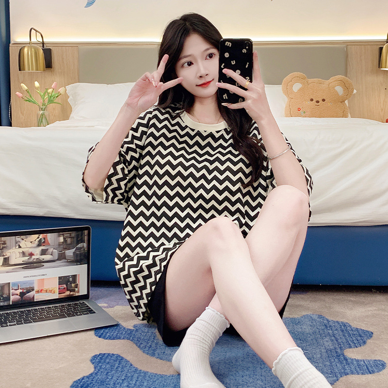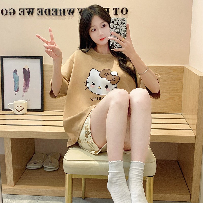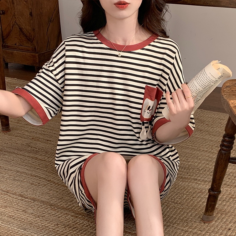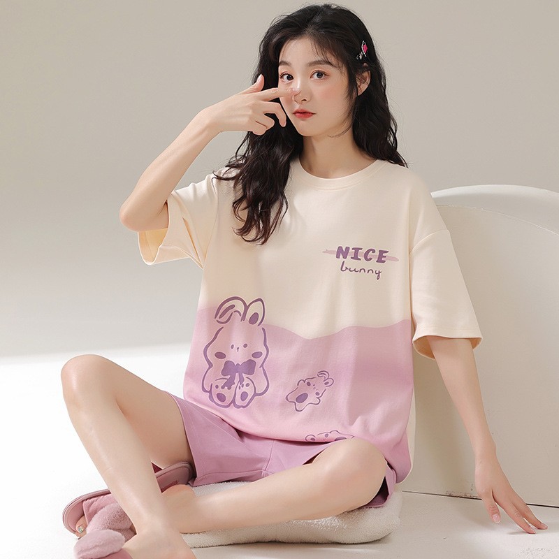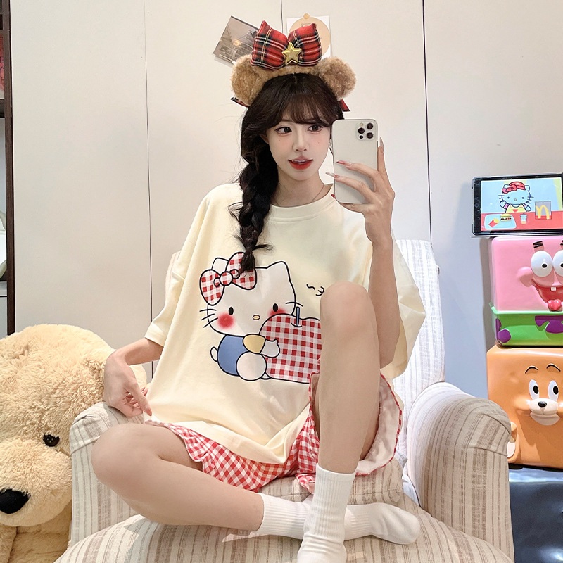 2026 여성용 반팔 잠옷 여름용 얇은 만화 캐릭터 소녀 학생용 라운드넥 여름용 홈웨어 세트(외부에서 착용 가능)스토어 가기