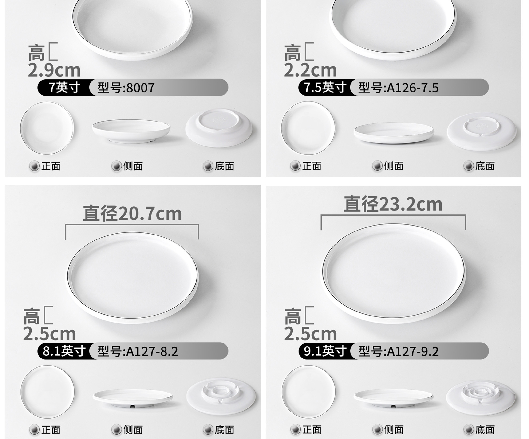 레스토랑 멜라민 식기 접시 라운드 상업용 호텔 레스토랑 레스토랑 요리 모방 도자기 접시 차가운 접시 차가운 요리