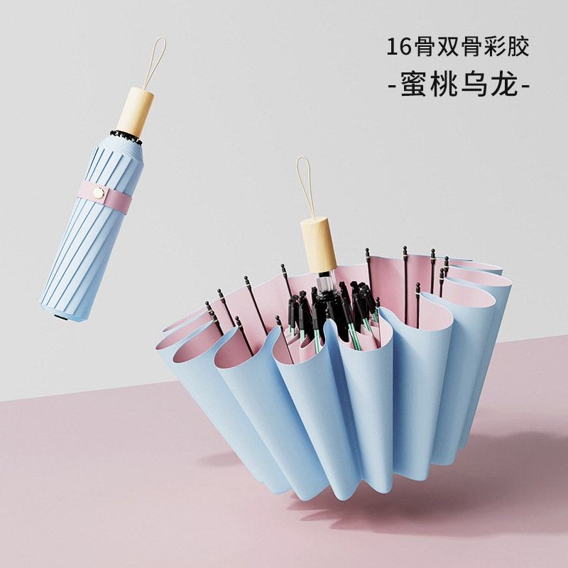 32-뼈 확대 강화 우산 소녀 컬러 고무 차양 우산 자외선 차단 자외선 차단 태양 우산 접이식 이중 목적 비와 빛