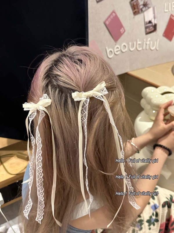 화이트 레이스 리본 머리핀, 발레 스타일 리본, 귀여운 사이드 클립, 고급스러운 소녀용 덕빌 클립, 헤어 액세서리스토어 가기
