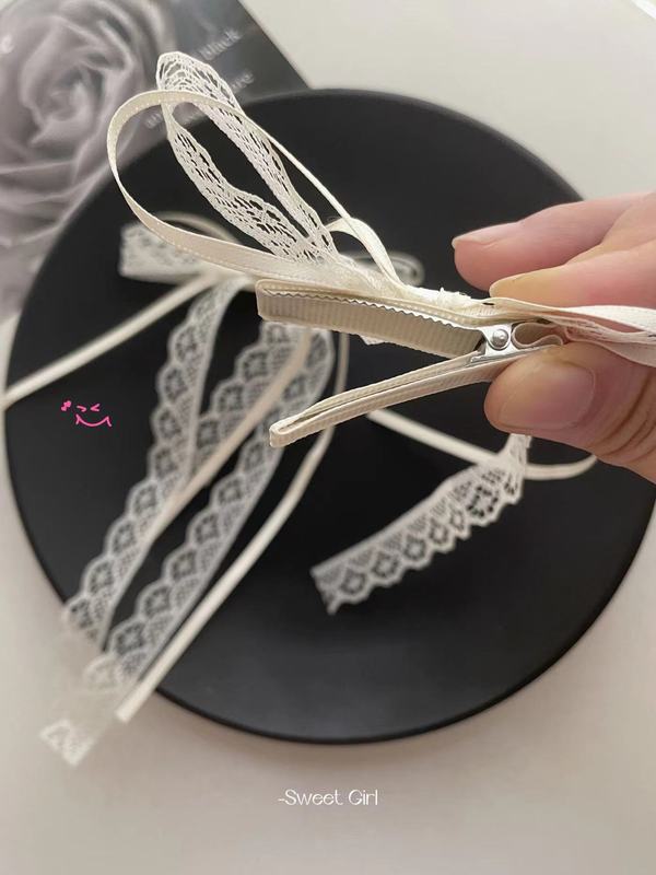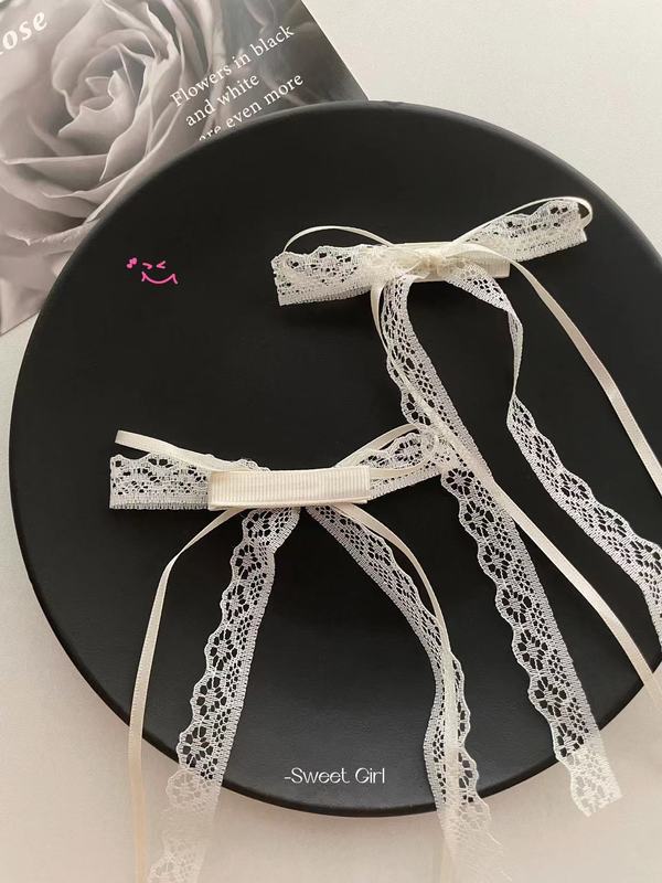 화이트 레이스 리본 머리핀, 발레 스타일 리본, 귀여운 사이드 클립, 고급스러운 소녀용 덕빌 클립, 헤어 액세서리