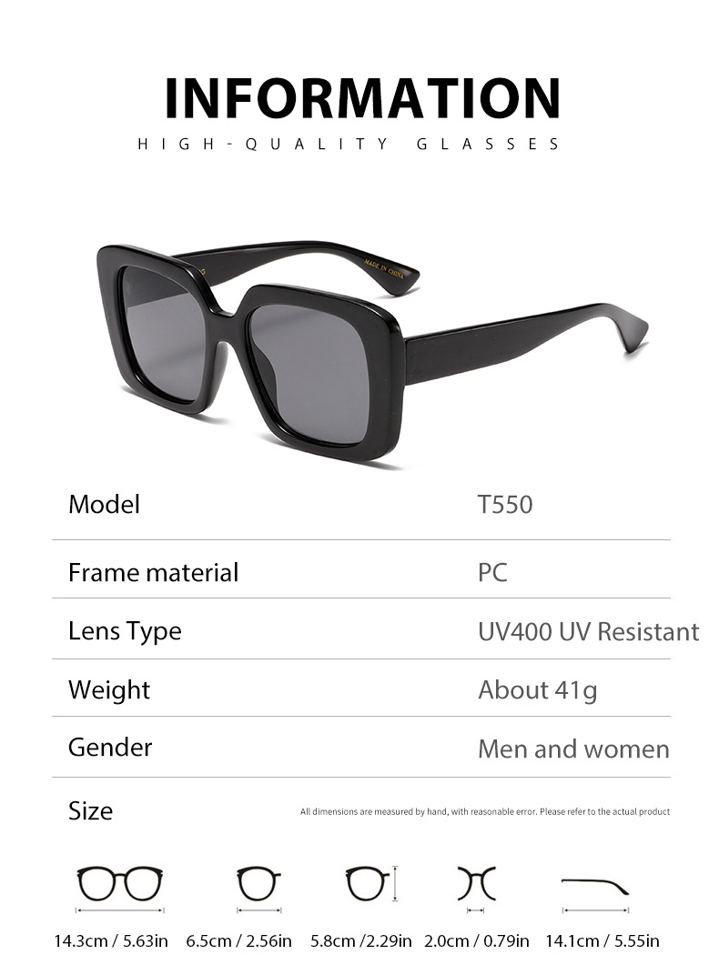 2024 아마존 해외 신제품 대형 사각 프레임 야외용 자외선 차단 선글라스 유럽 및 미국 해외 패션 선글라스 T550