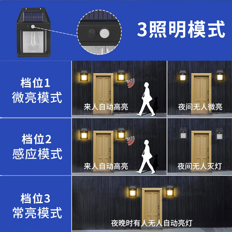 국경 태양 램프 텅스텐 램프 야외 조명 방수 가로등 태양 벽 램프 유도 램프 사람들이 외출