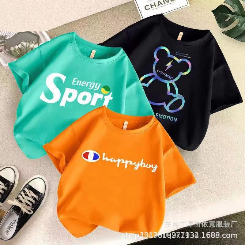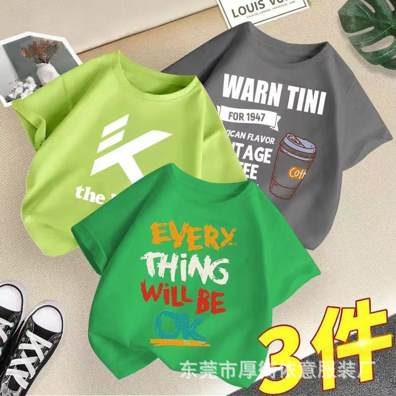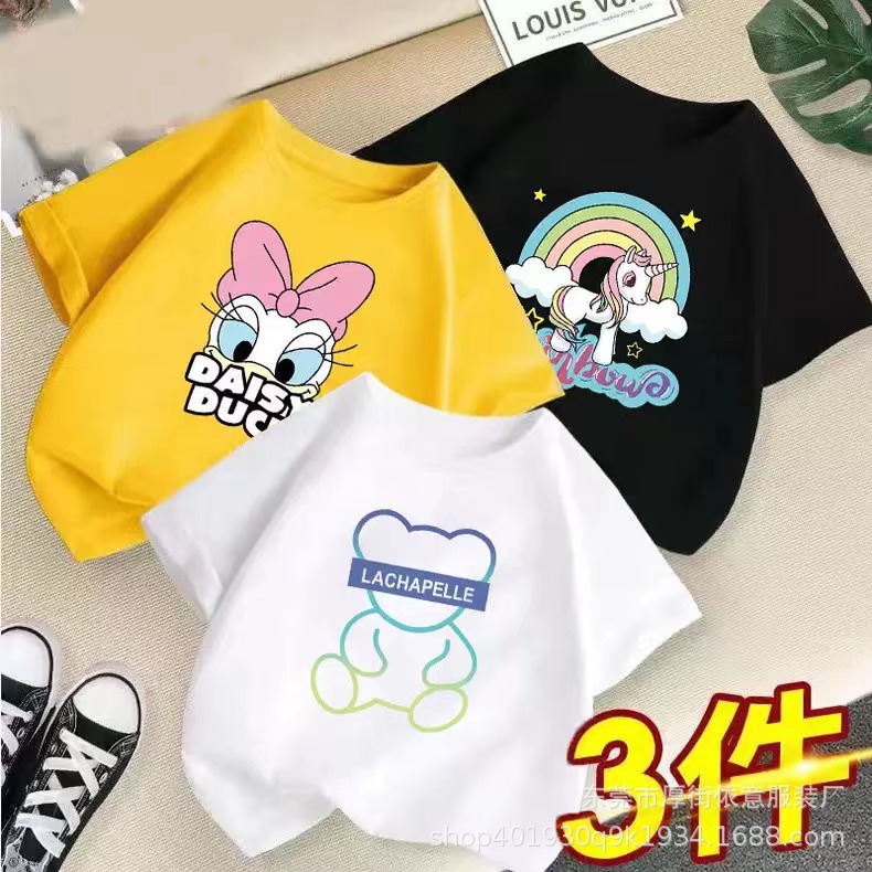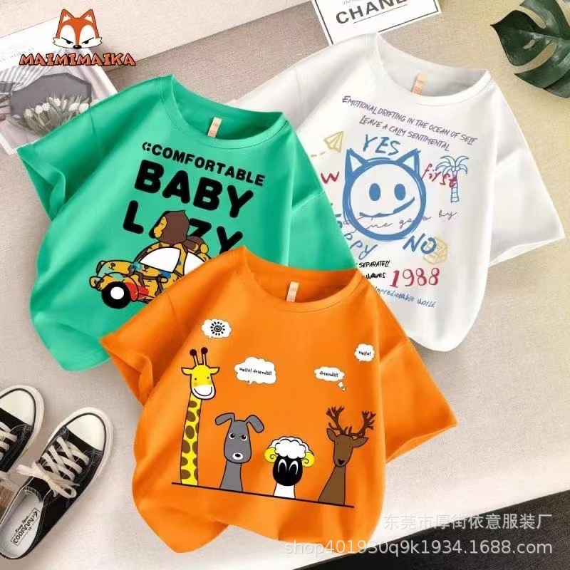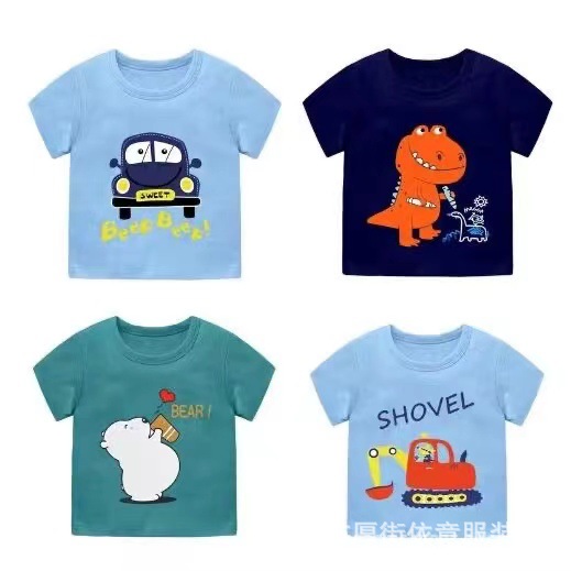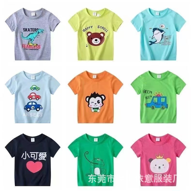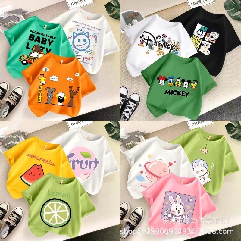 5 위안 아동복 도매 2025 새로운 어린이 반팔 바닥 셔츠 소년 소녀 티셔츠 만화 마구간 공급스토어 가기