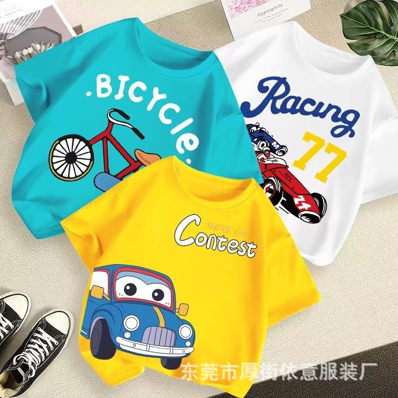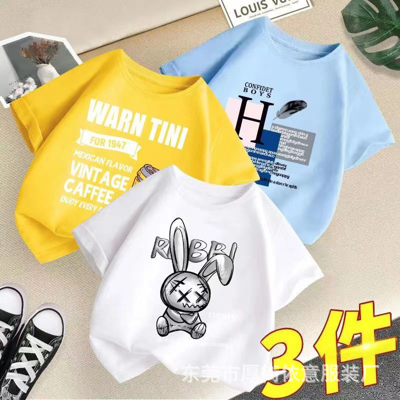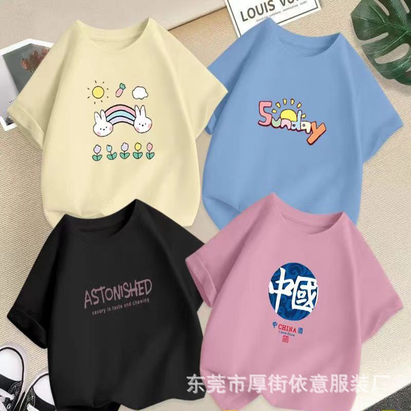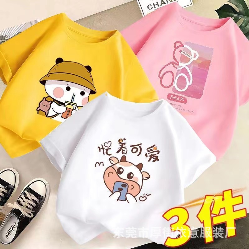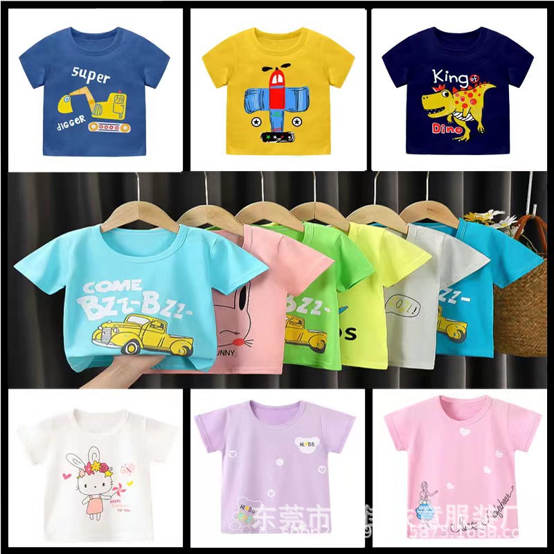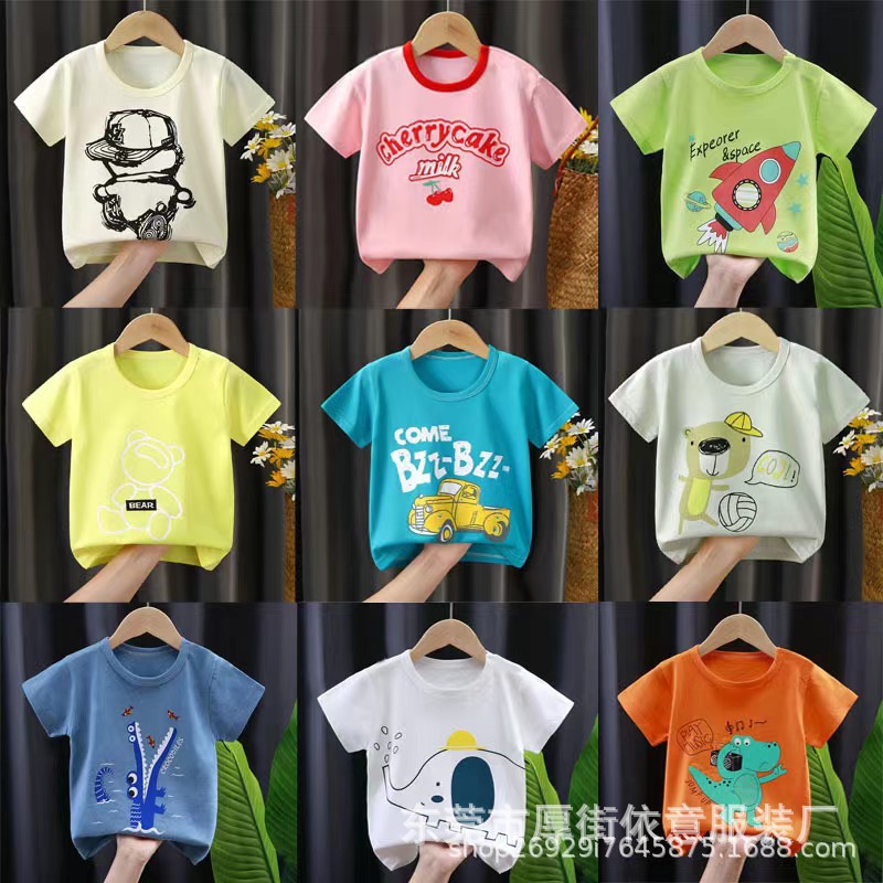 5 위안 아동복 도매 2025 새로운 어린이 반팔 바닥 셔츠 소년 소녀 티셔츠 만화 마구간 공급