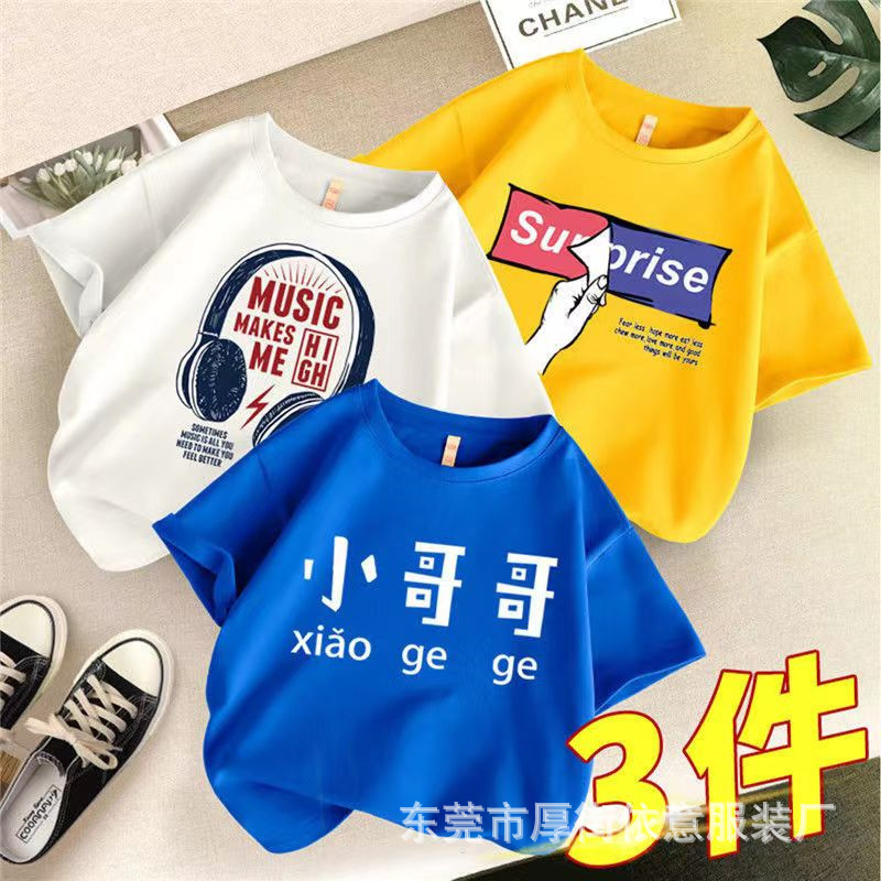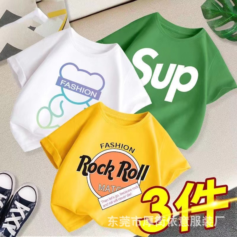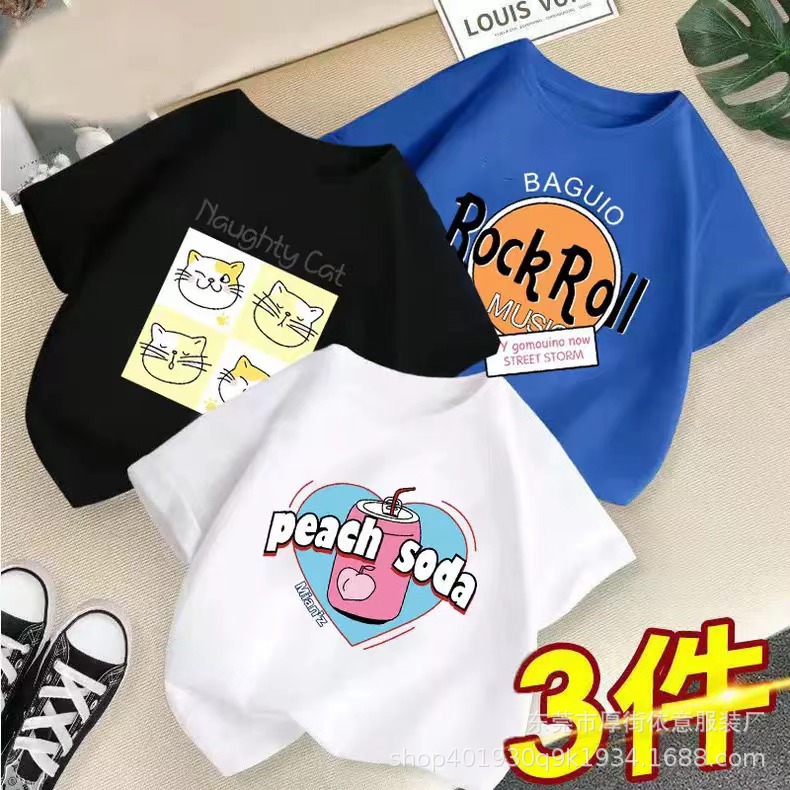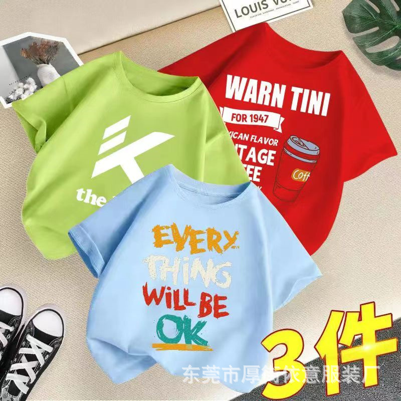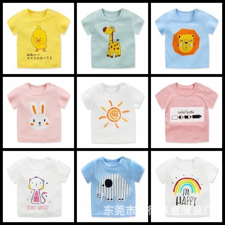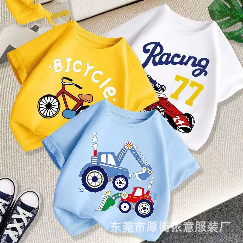 5 위안 아동복 도매 2025 새로운 어린이 반팔 바닥 셔츠 소년 소녀 티셔츠 만화 마구간 공급