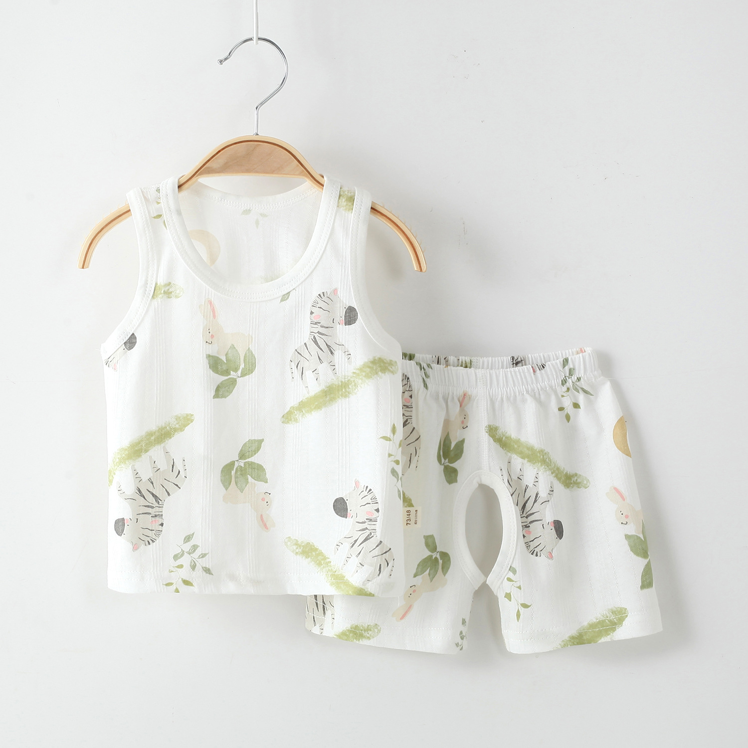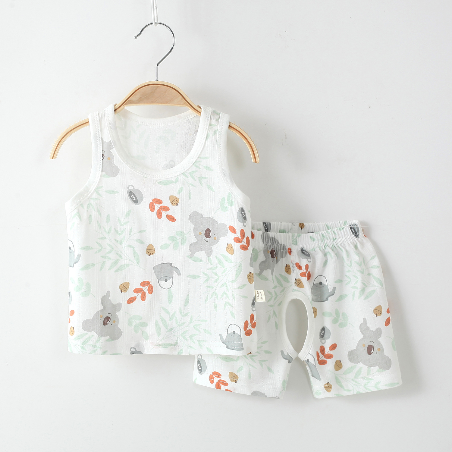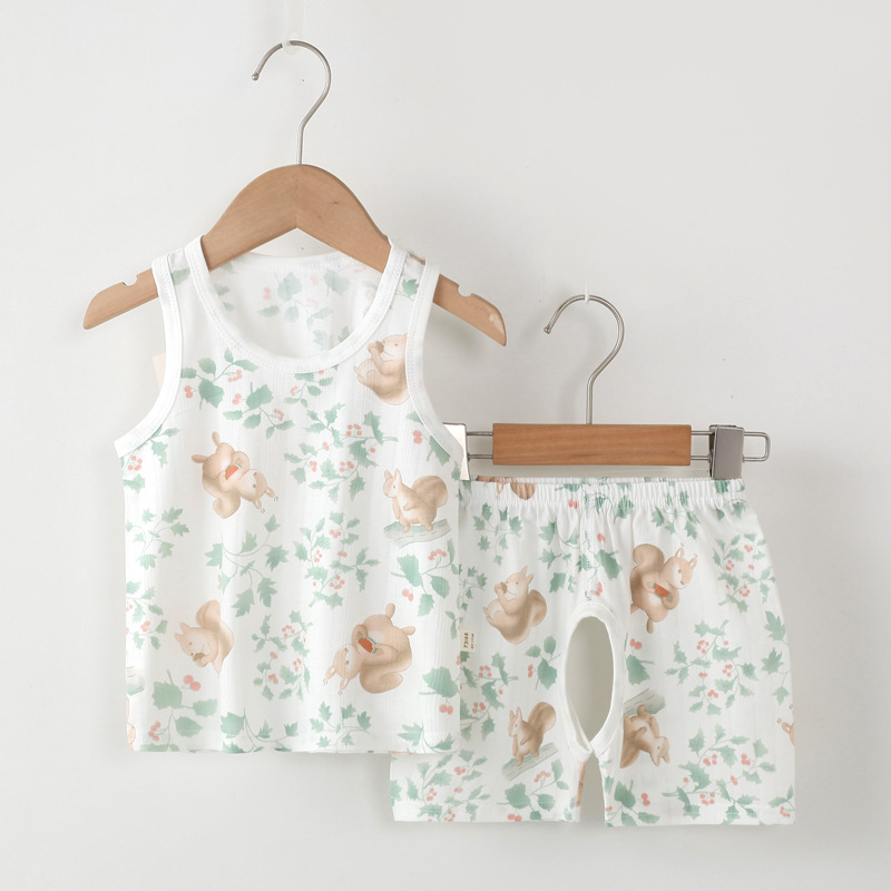 어린이 조끼 반바지 여름 얇은 집 옷 순면 뼈없는 클래스 소년 소녀를위한 민소매 조끼 반바지