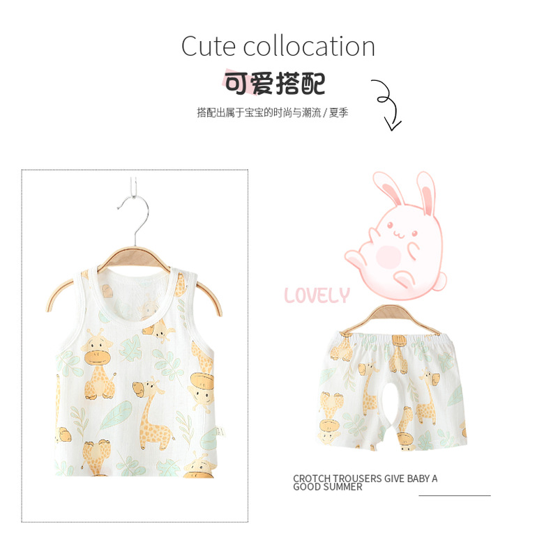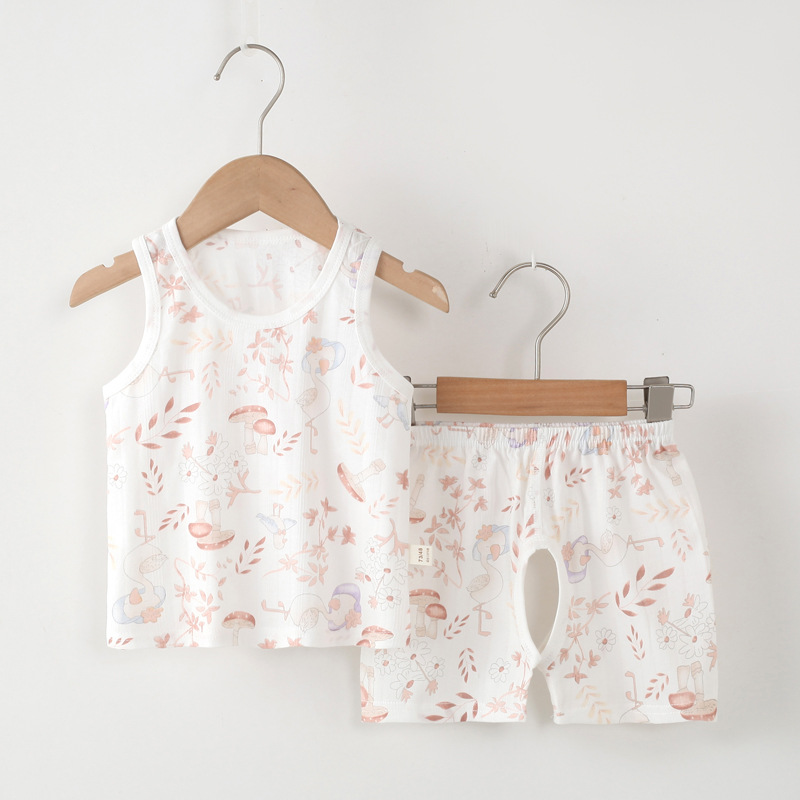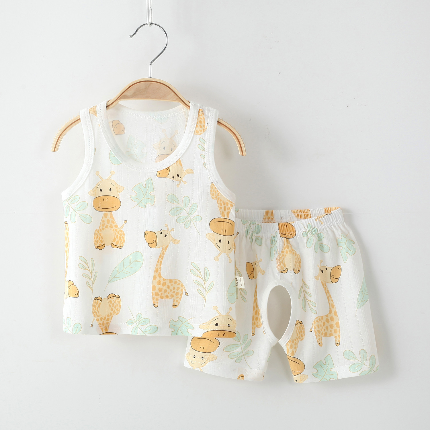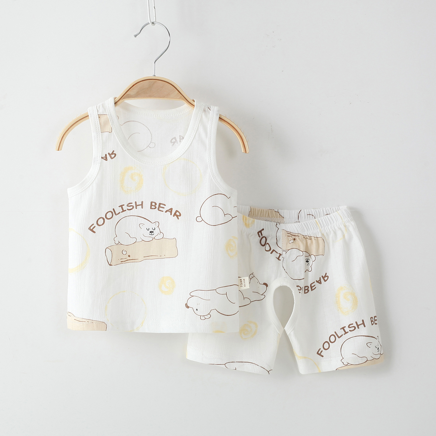 어린이 조끼 반바지 여름 얇은 집 옷 순면 뼈없는 클래스 소년 소녀를위한 민소매 조끼 반바지
