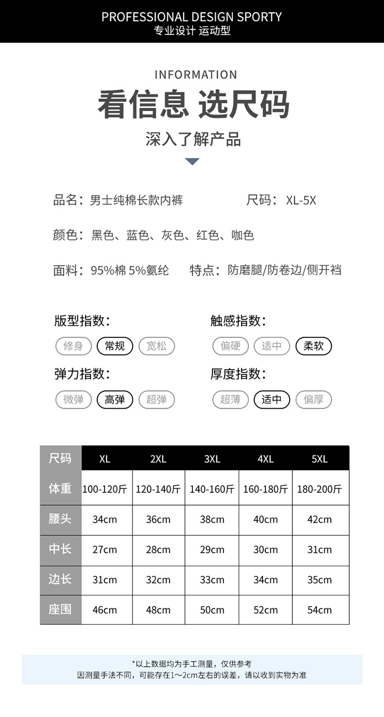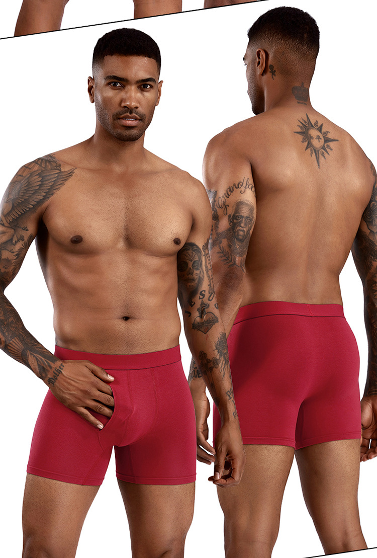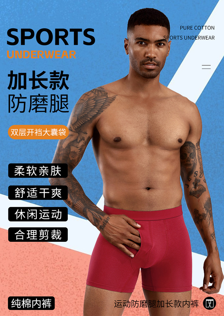 국경 간 뚱뚱한 남자 긴 남자 속옷 면화 복서 안티 롤 사이드 오프닝 통기성 속옷 남성 복서 반바지 공장