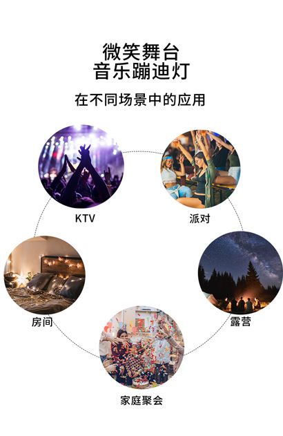 국경 간 웃는 무대 조명 블루투스 음악 디스코 분위기 조명 서브 우퍼 매직 볼 조명 원격 제어 KTV 천막