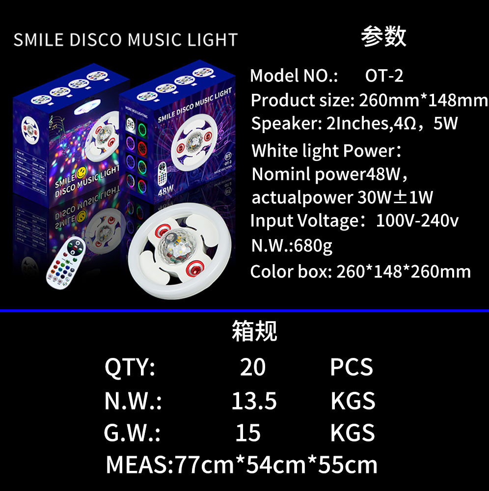 국경 간 웃는 무대 조명 블루투스 음악 디스코 분위기 조명 서브 우퍼 매직 볼 조명 원격 제어 KTV 천막스토어 가기
