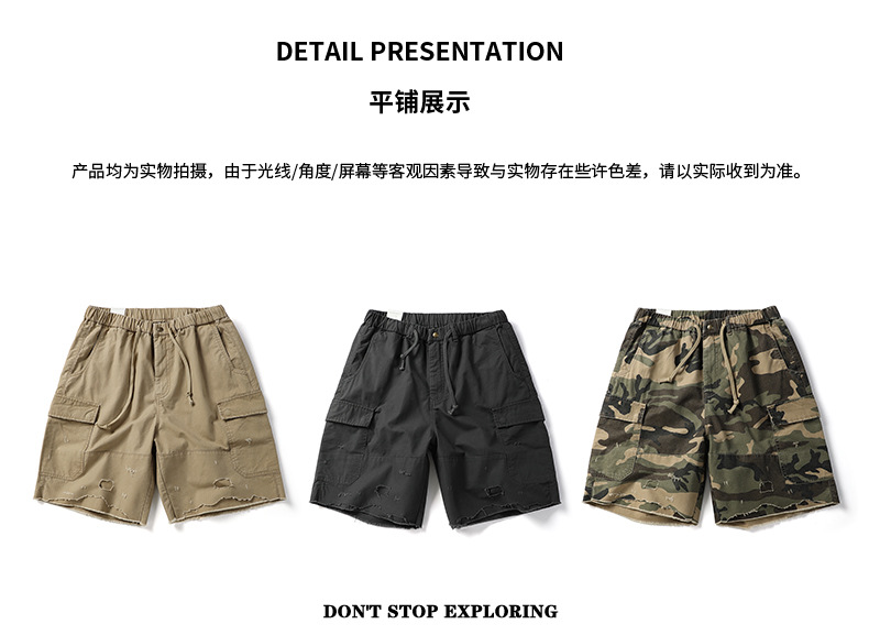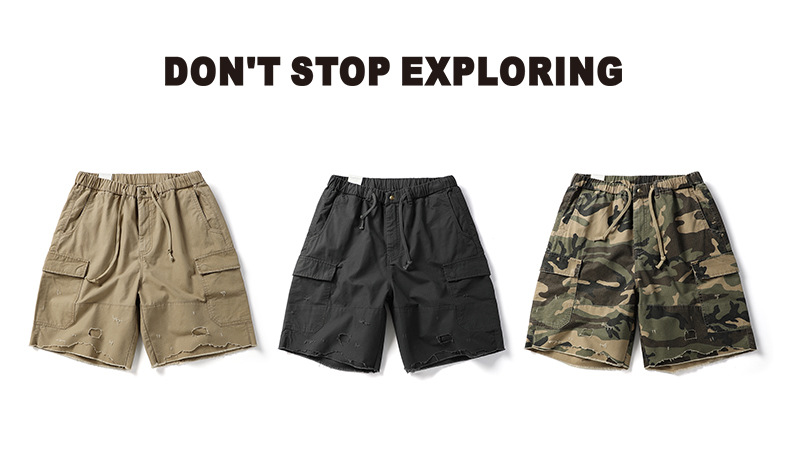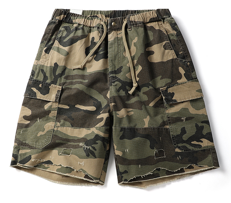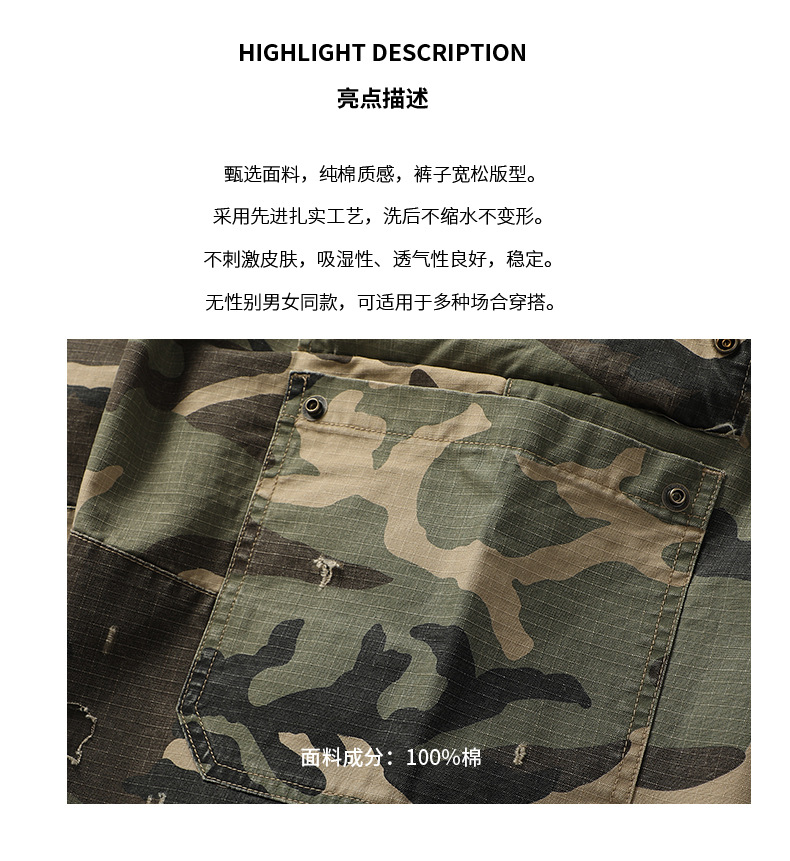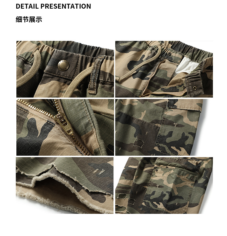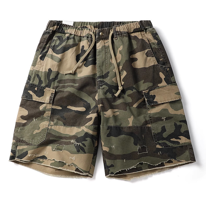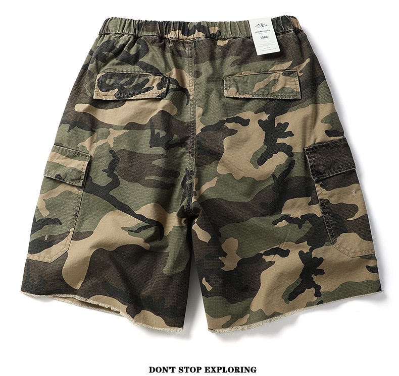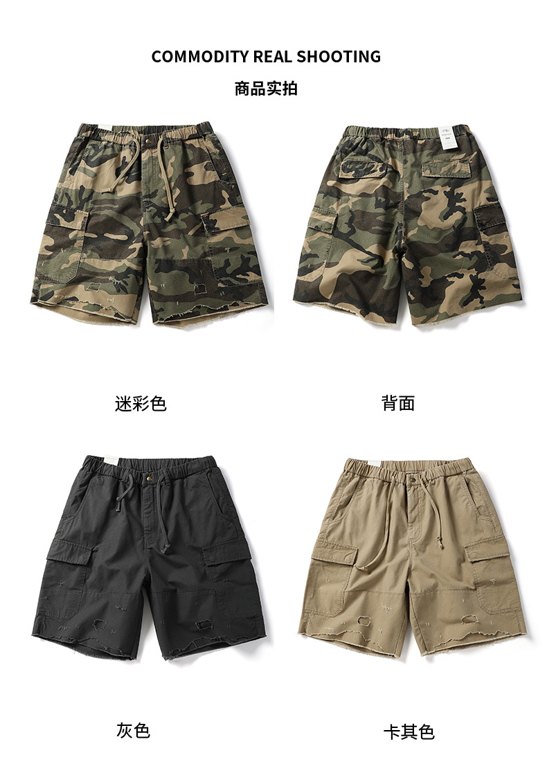 아메리칸 스타일 레트로 위장 반바지 남성 여름 트렌디 브랜드 멀티 포켓 작업복 캐주얼 바지 유행 남성용 루즈 스트레이트 바지스토어 가기