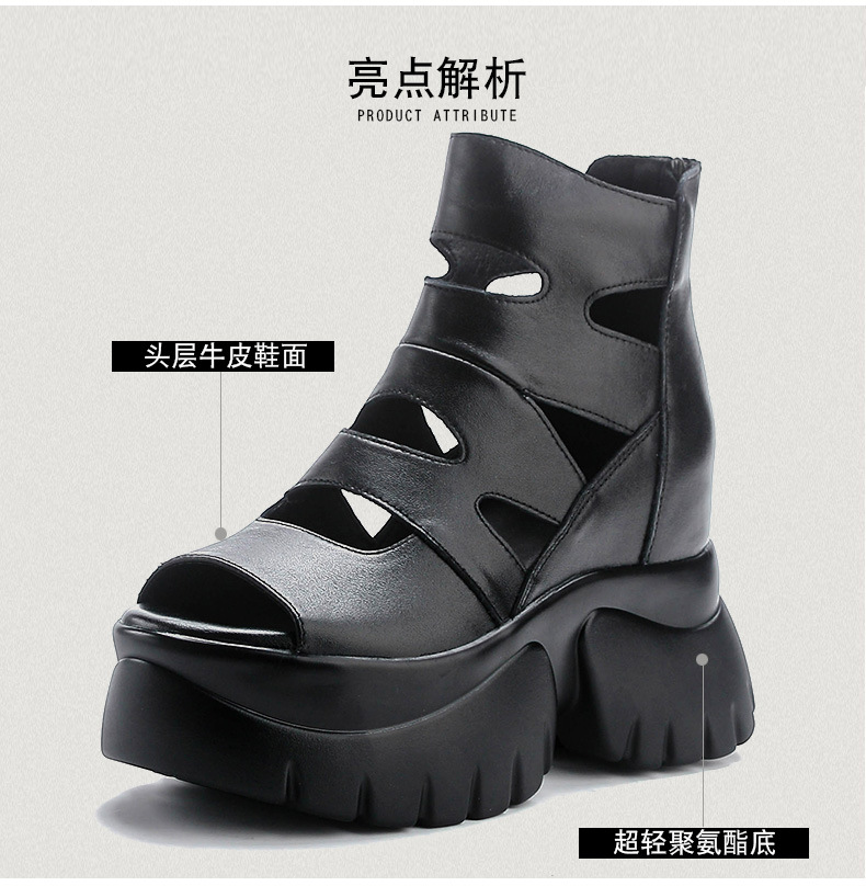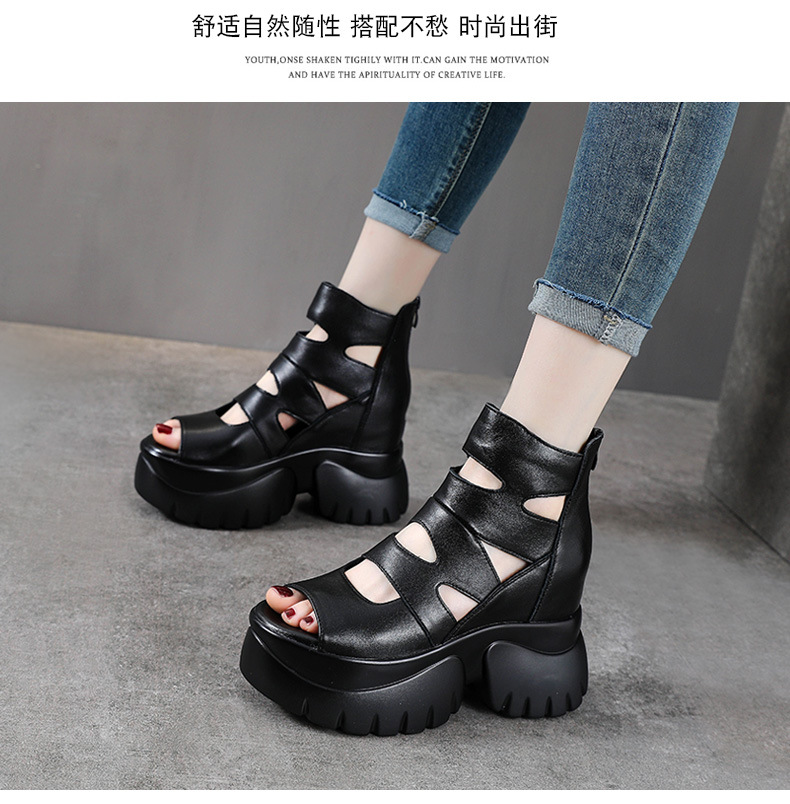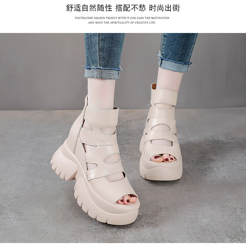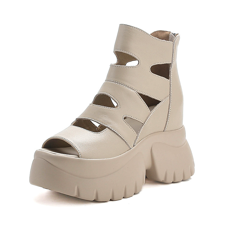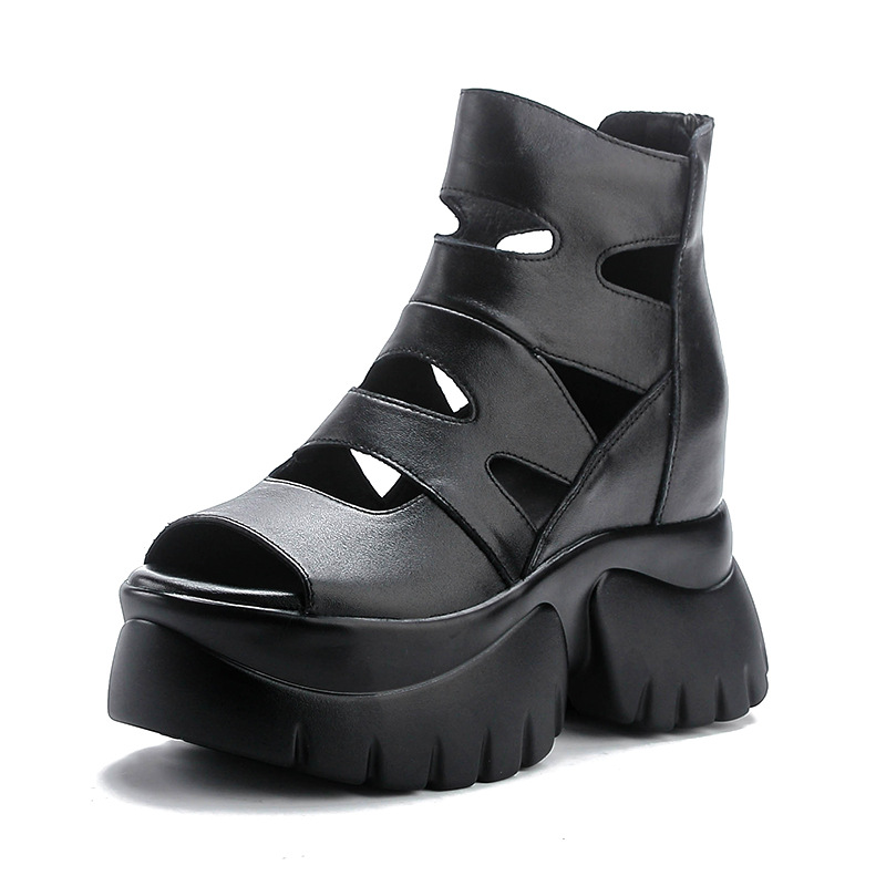 탑 레이어 소 가죽 여름 복고풍 플랫폼 샌들이 속이 빈 홀 짧은 부츠 가죽 여성 샌들 청키 힐 샌들을 높입니다.스토어 가기