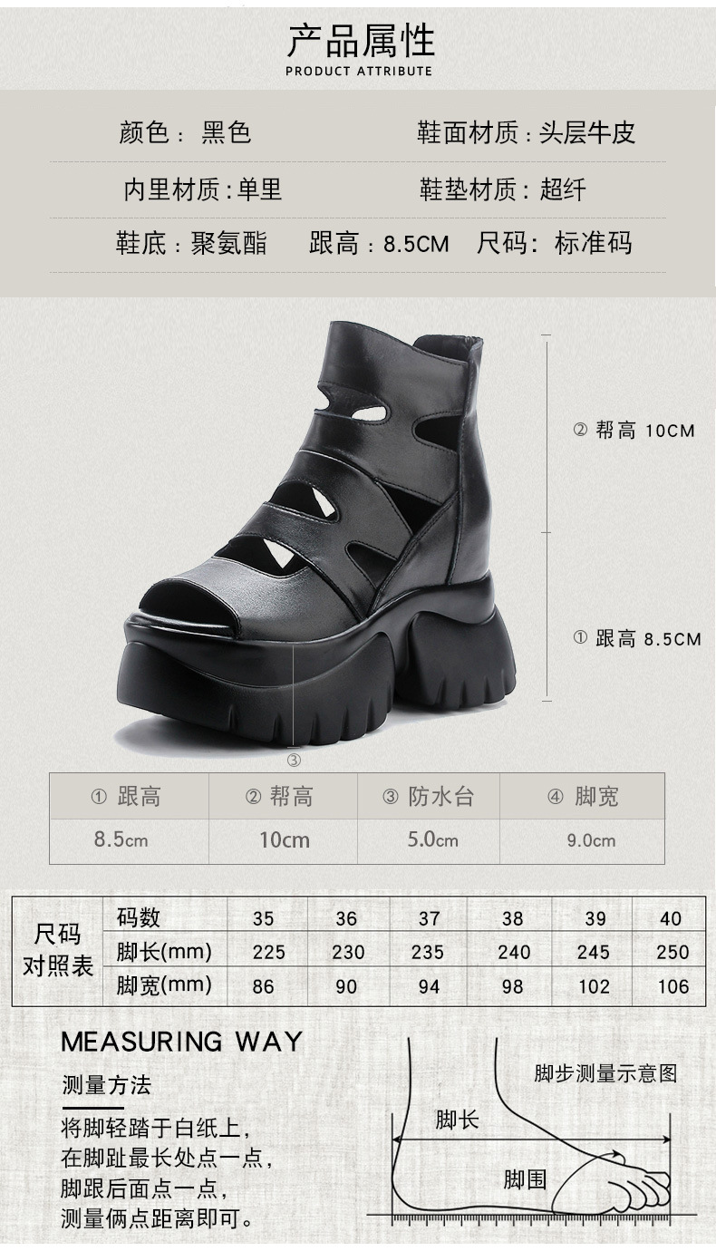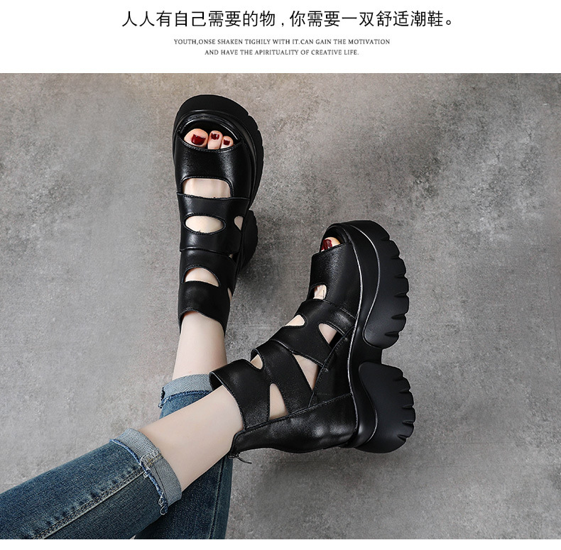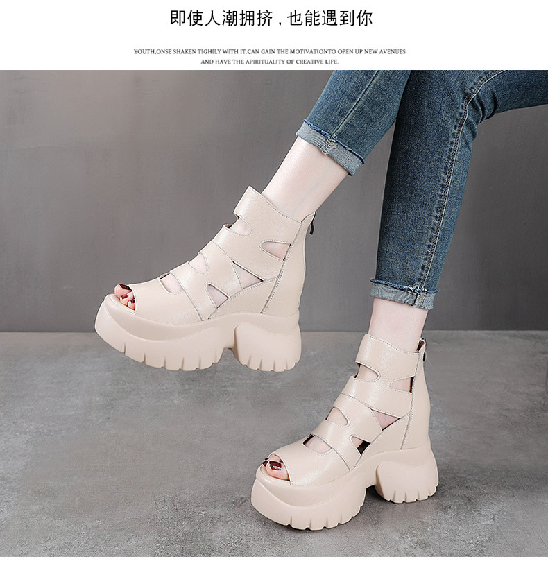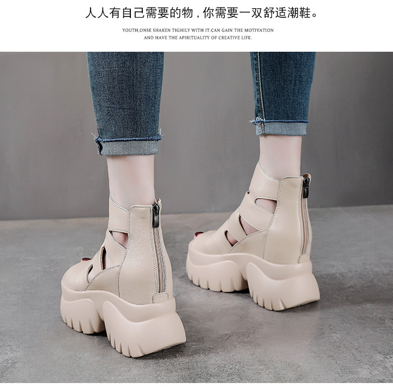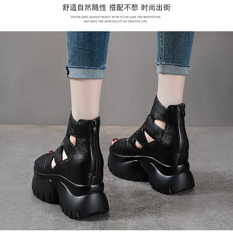탑 레이어 소 가죽 여름 복고풍 플랫폼 샌들이 속이 빈 홀 짧은 부츠 가죽 여성 샌들 청키 힐 샌들을 높입니다.스토어 가기