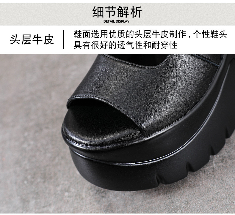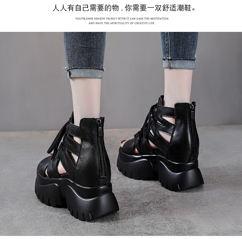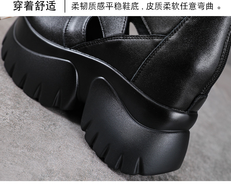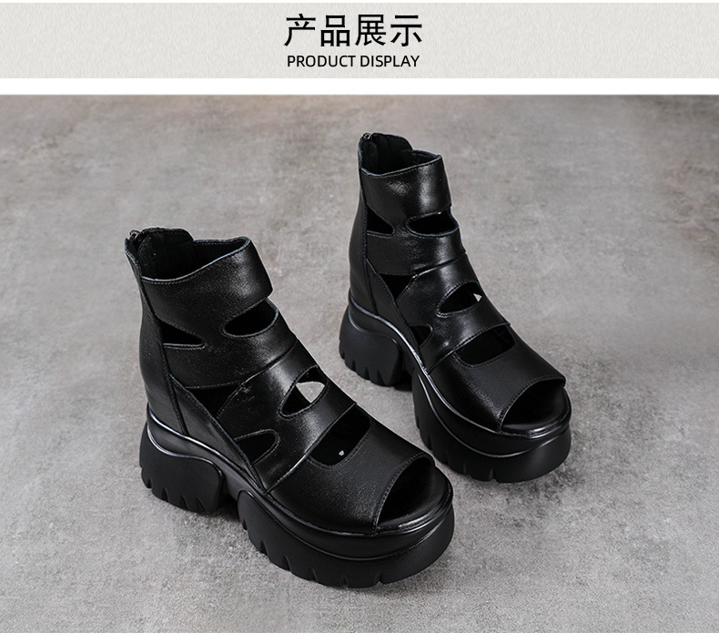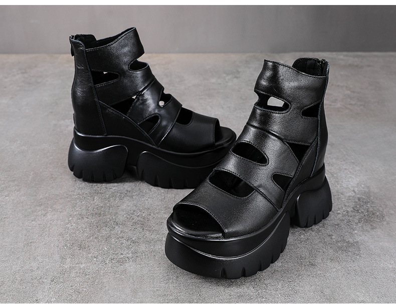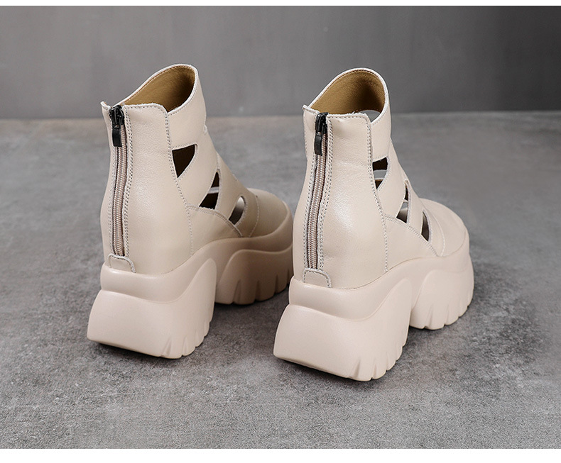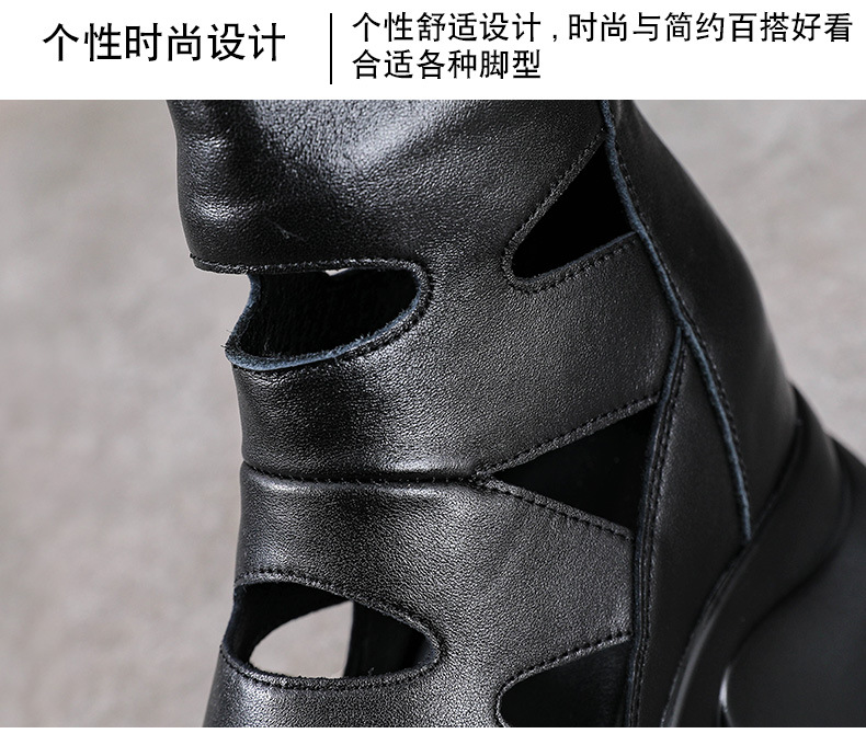 탑 레이어 소 가죽 여름 복고풍 플랫폼 샌들이 속이 빈 홀 짧은 부츠 가죽 여성 샌들 청키 힐 샌들을 높입니다.