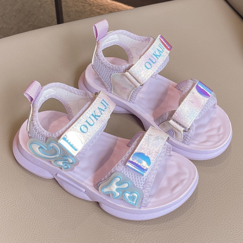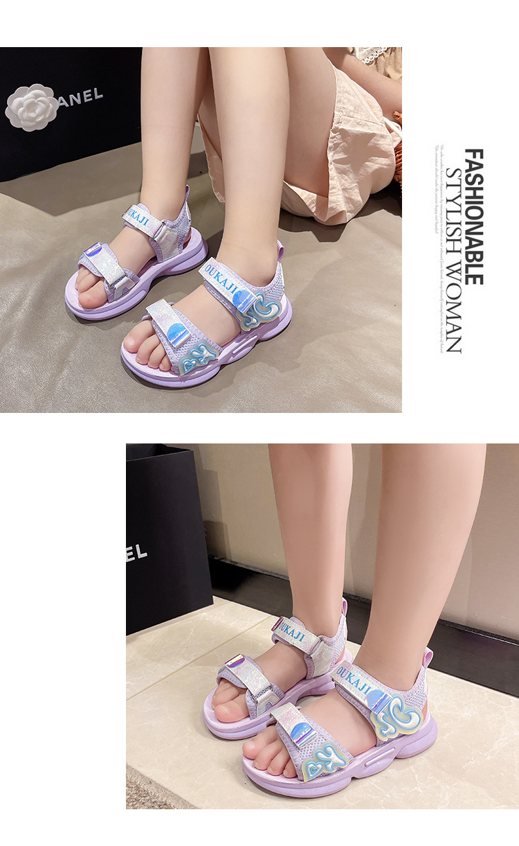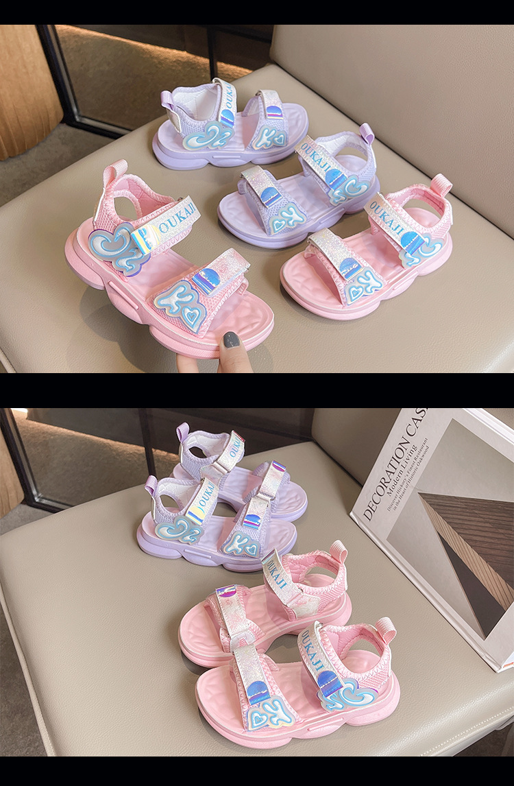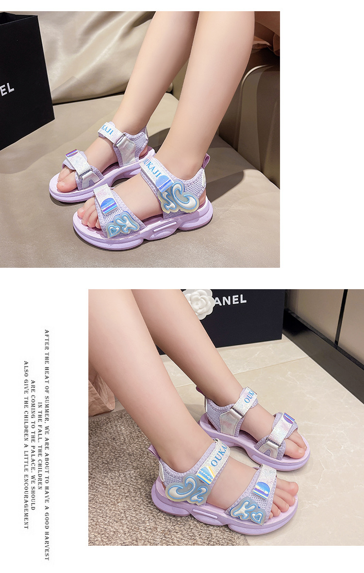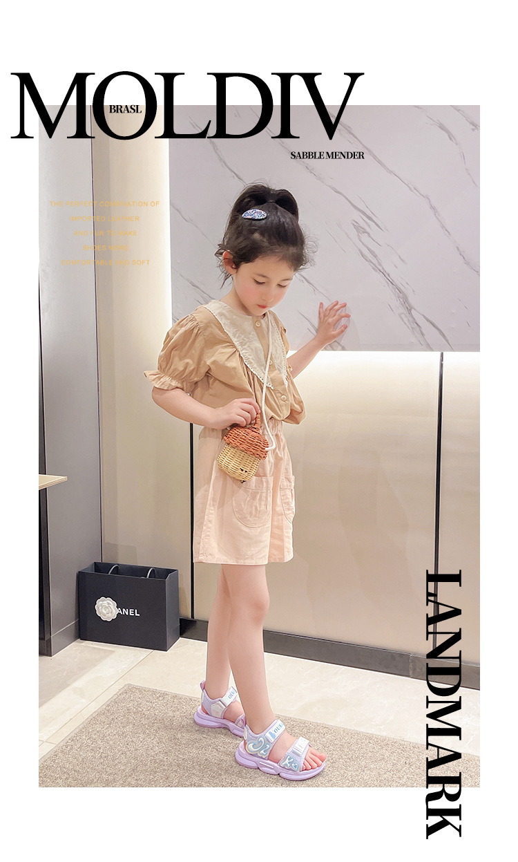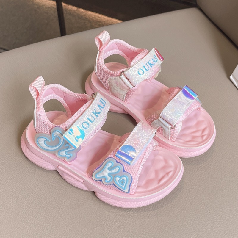 소녀 샌들 공주 스타일 한국 스타일 여름 캐주얼 올 매치 비치 슈즈 비 슬립 솔리드 소프트 솔 샌들 도매 어린 소녀들을위한 도매
