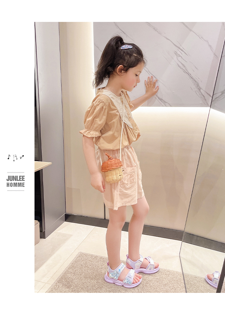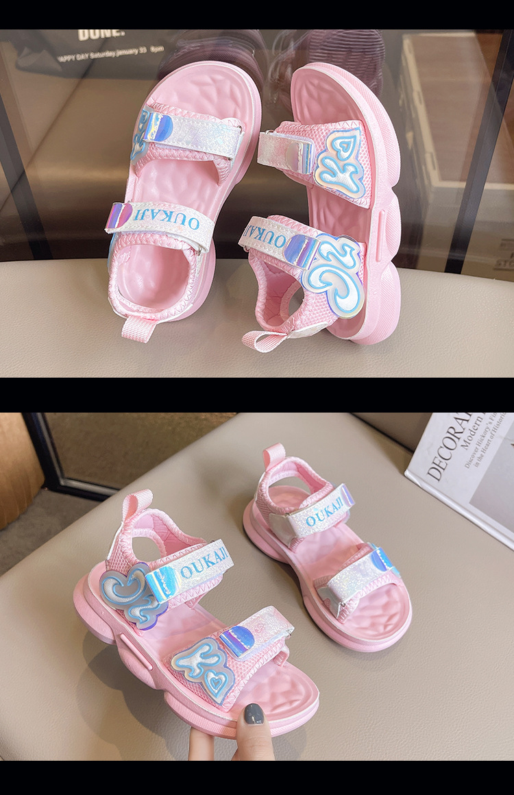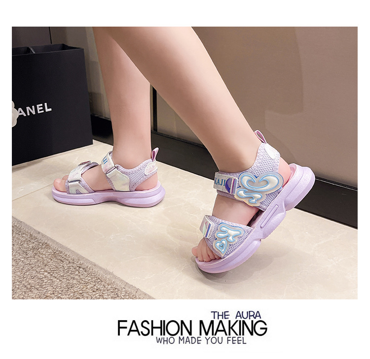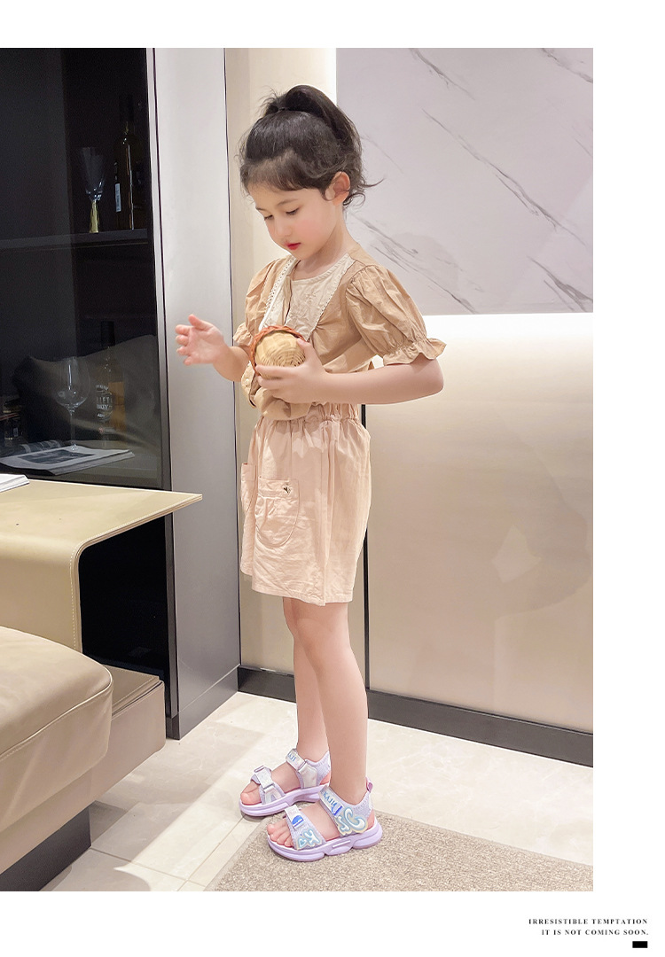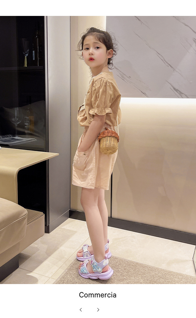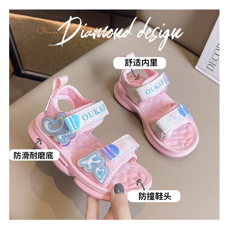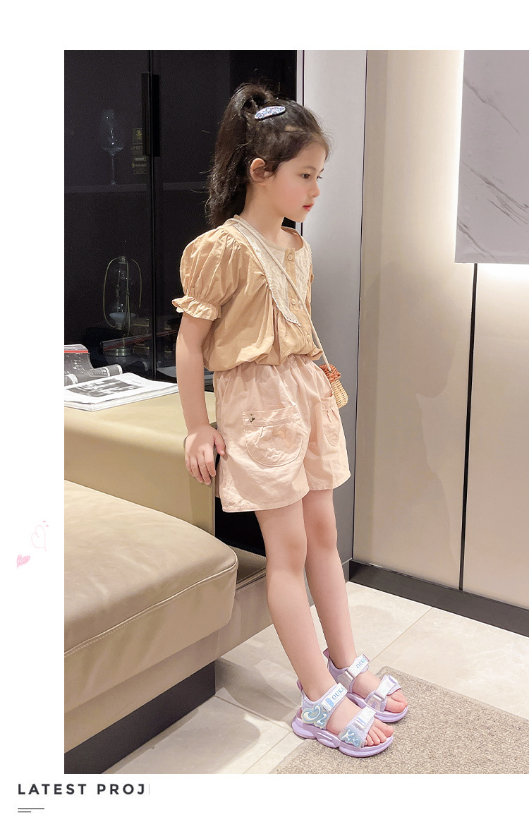 소녀 샌들 공주 스타일 한국 스타일 여름 캐주얼 올 매치 비치 슈즈 비 슬립 솔리드 소프트 솔 샌들 도매 어린 소녀들을위한 도매