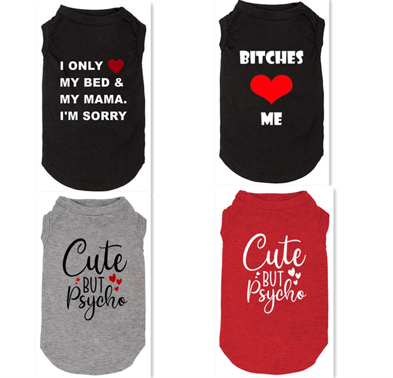 아마존 폭발 애완 동물 의류 BITCHES 사랑 ME 인쇄 개 조끼 영어 Bitch 티셔츠스토어 가기