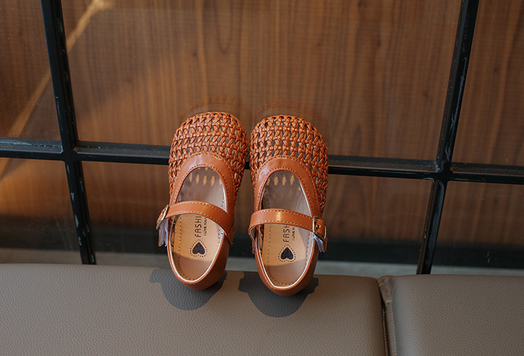 한국 스타일 소녀 공주 신발 여름 새로운 어린이 중공 짠 샌들 얕은 입 아기 소녀의 우유 신발 콩 신발